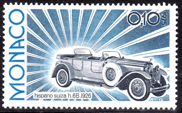 Auf dieser Marke aus Monaco (MiNr 1192) wird ein Hispano-Suiza H6B Baujahr 1926 gezeigt.