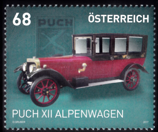 Eine Marke (MiNr 3344) der österreichischen Serie "Automobile" zeigt einen Puch XII Alpenwagen. Er wird auch oft als "kleiner Alpenwagen" bezeichnet, im Gegensatz zum "großen" Alpenwagen VIII. Der kleine Alpenwagen XII war mit einem Vierzylinder-Reihenmotor mit 22 PS und 1.488 Kubikzentimeter Hubraum ausgestattet und hatte etwa die halbe Leistung des Alpenwagens VIII. Produziert wurde er von 1919 bis 1920 in einer Stückzahl von 300 Fahrzeugen. Nur wenige Fahrzeuge sind heute noch erhalten.