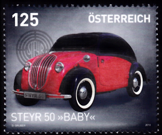Aus Österreich kommt diese Marke (MiNr 3376) mit einem Steyr 50 aus dem Jahre 1936.