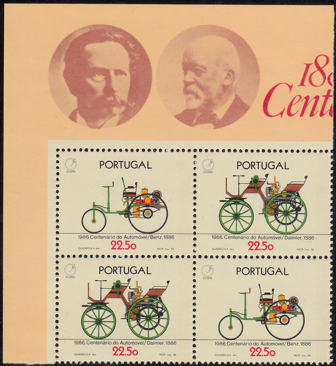 In Portugal erschien zum Thema "100 Jahre Automobil" eine Marke (MiNr 1686), die einen Benz Motorwagen von 1886 abbildet.