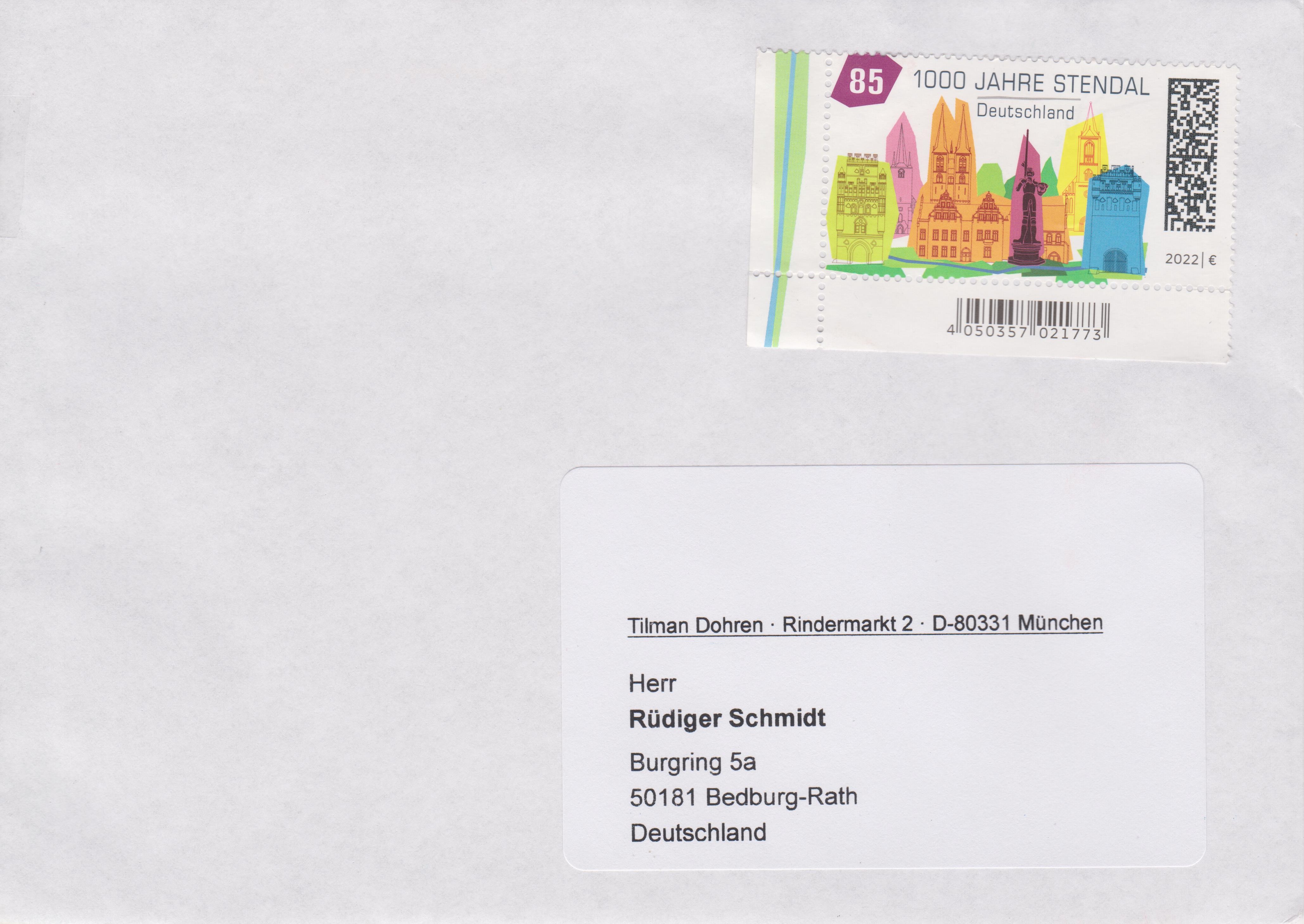 Einzelfrankatur einer Bund MiNr. 3698 am 04.08.22 portogerecht auf Standardbrief von 95145 OBERKOTZAU: