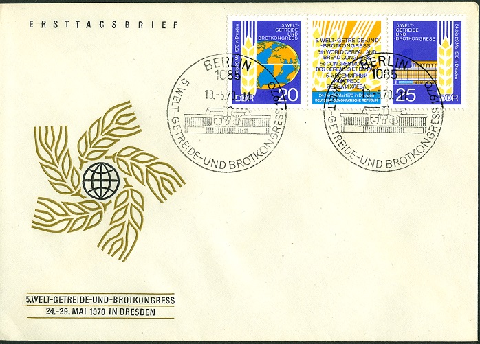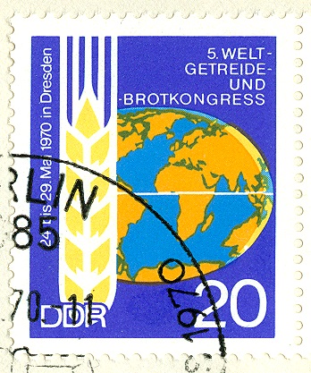 Anlassbezogen gab die damalige Postverwaltung der DDR einen Zusammendruck (2 Marken mit Zwischenfeld) heraus, der dem 5. Welt-Getreide- und Brotkongress, der 1970 in Dresden statt fand, gewidmet war.