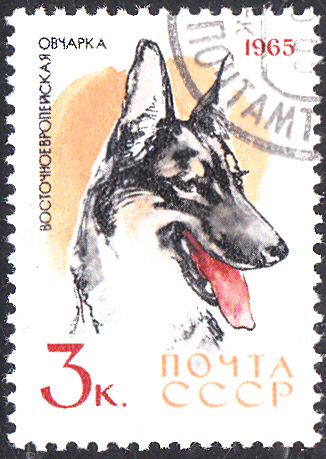 Diese Marke der Sowjetunion (MiNr 3022) zeigt den Kopf eines Osteuropäischen Schäferhundes.