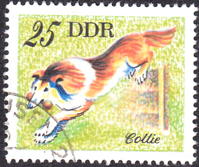 In der DDR ist diese Marke (MiNr 2158) mit einem Langhaarcollie erschienen.