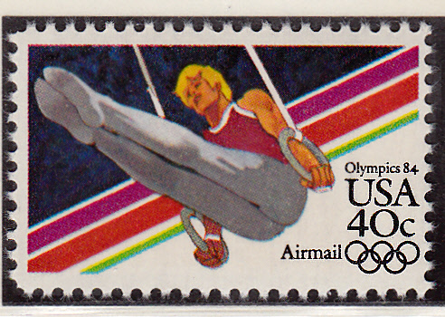 Zu den Olympischen Spielen 1984 in Los Angeles erschien in den USA auch eine Marke mit einem Turner an den Ringen im Markenbild (MiNr 1623). Die Marke gibt es in zwei verschiedenen Zähnungen: A = gez. K 11 (8.4.1983) und F = gez. L 10 3/4 (1984)