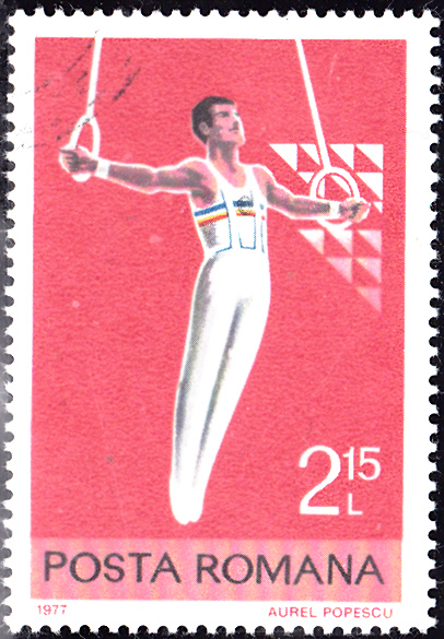 In einer Ausgabe aus Rumänien zu dem Thema "Turnen" gibt es auch eine Marke (MiNr 3471) mit einem Turner an den Ringen.