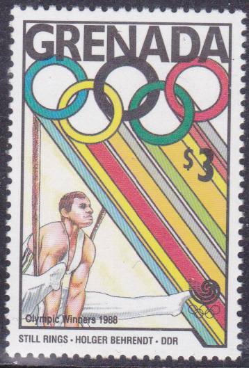 An den Olympiasieg an den Ringen 1988 von Holger Behrendt (geb. 29. Jan. 1964 in Schönebeck, ehemaliger Kunstturner aus der DDR) erinnert eine Marke aus Grenada (MiNr 1967).