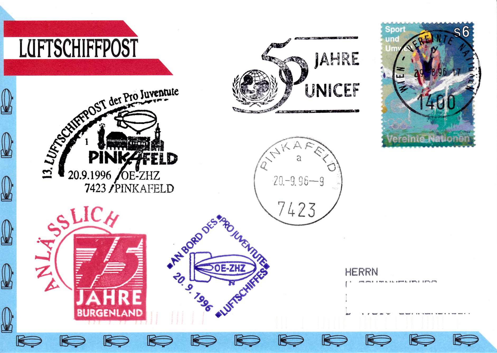 Die Marke ist als Porto für einen Brief mit Luftschiffpost der Österreichischen Pro Juventute verwendet worden.