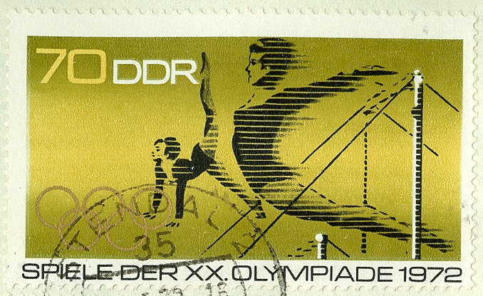 Diese Marke aus einem Satz Turnmotive aus dem Jahr 1961 zeigt das Bodenturnen.