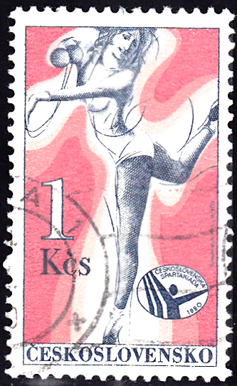 Aus der Tschechoslowakei kommt diese Marke mit einer Darstellung zur Rhythmischen Sportgymnastik.