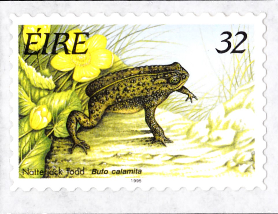In einer Serie "Reptilien und Amphibien" ist in Irland diese Marke (MiNr 909) mit einer Kreuzkröte (Bufo calamita) erschienen.