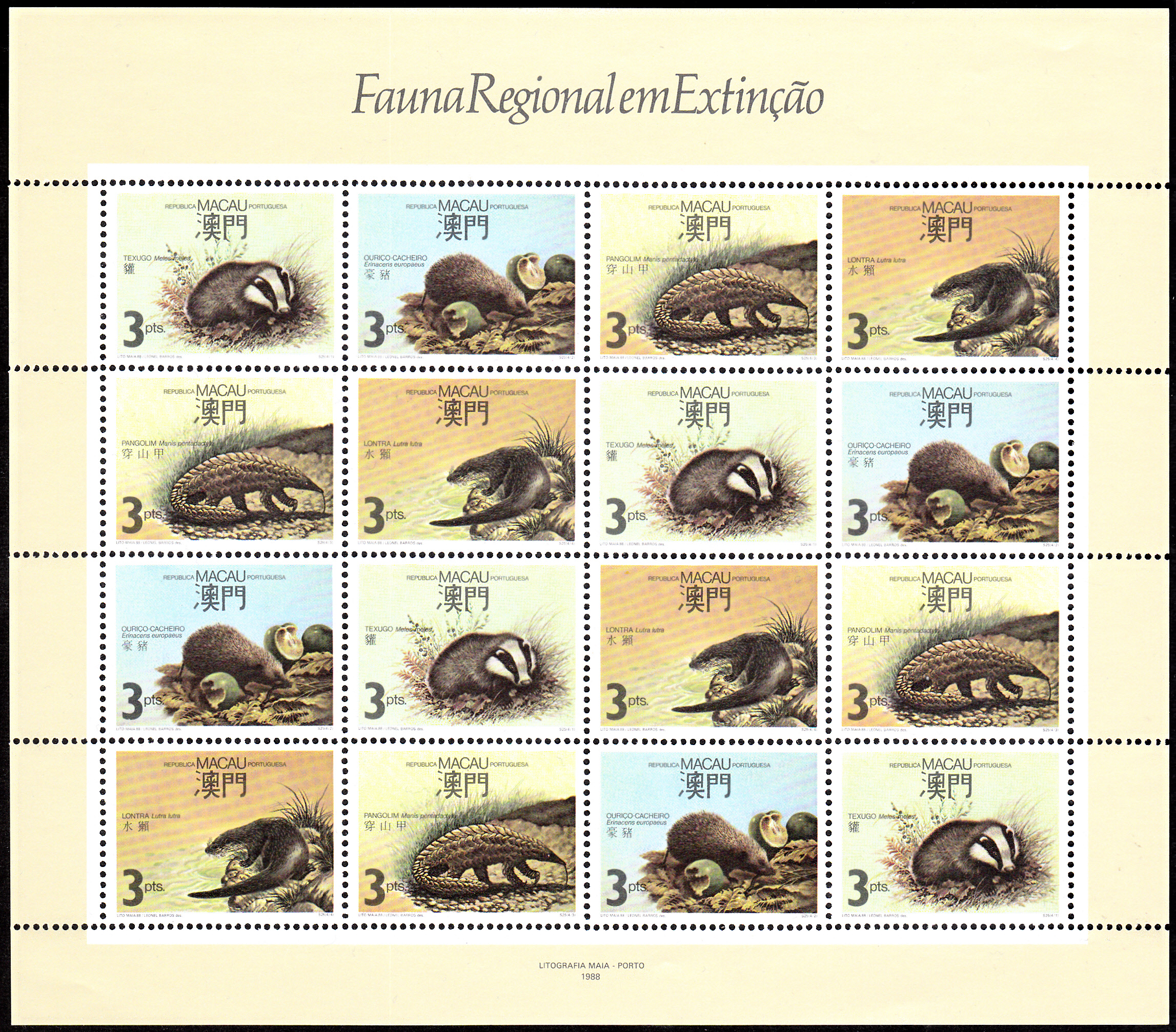 In einer Serie "Säugetiere" ist 1988 in Macau auch eine Marke mit einem Europäischen Dachs (Meles meles) erschienen (MiNr 592).