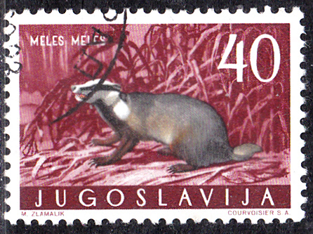 Es folgt hier eine Marke aus Jugoslawien (MiNr 922) mit einem Dachs (Meles meles).