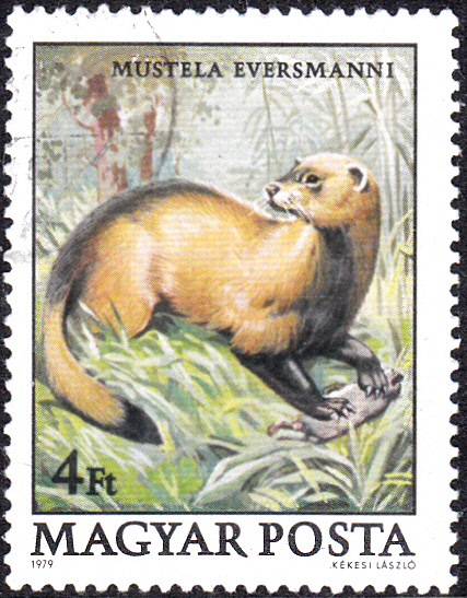Hier eine Marke aus Ungarn (3388 A) mit einem Steppeniltis (Mustela eversmanni) im Markenbild.