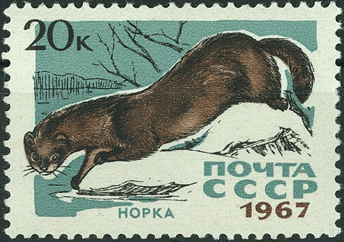 Eine Marke einer CCCP-Ausgabe des Jahres 1967 zeigt einen solchen Europäischen Nerz.