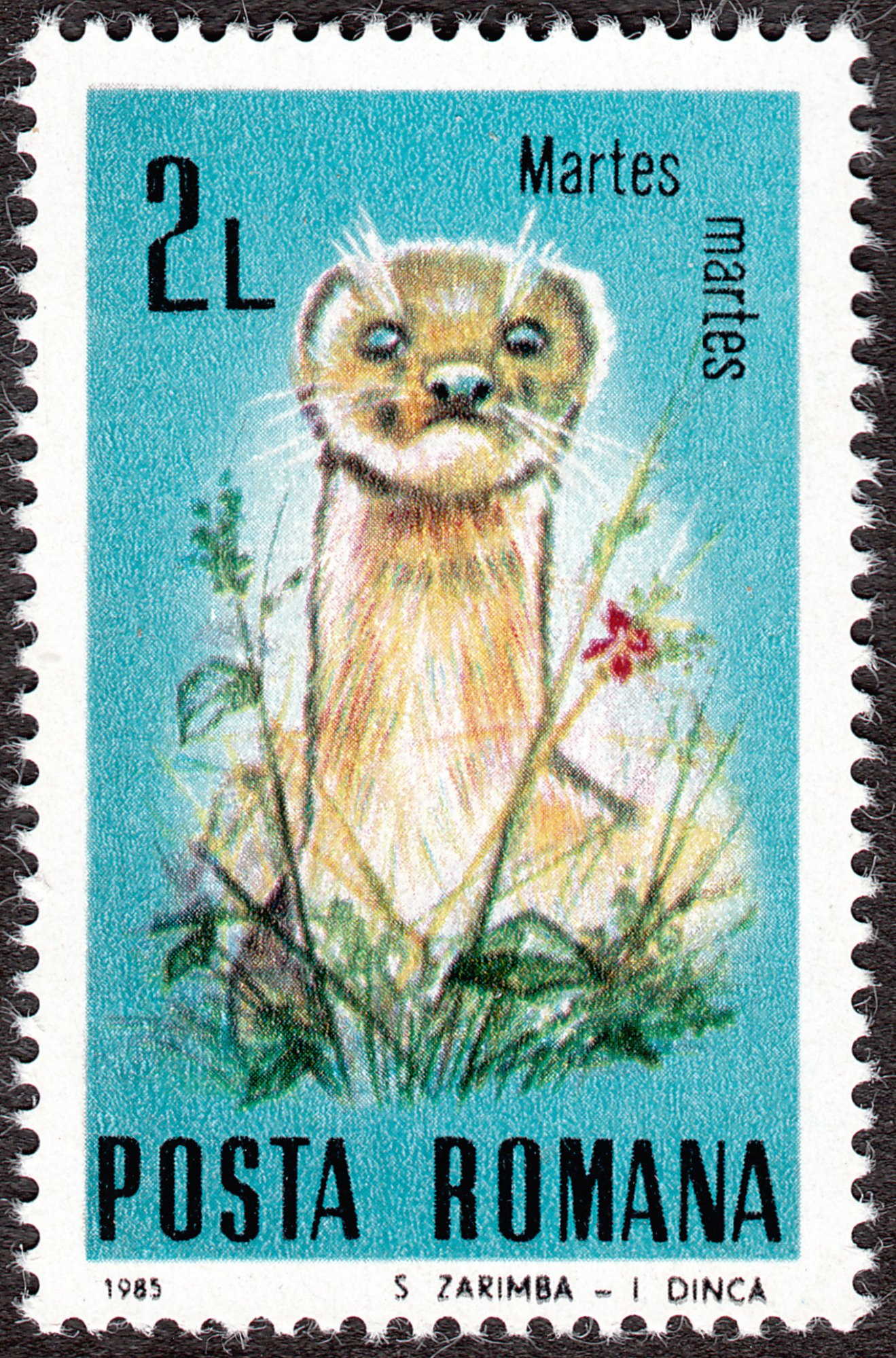 Dieses Postwertzeichen aus Rumänien zeigt ebenfalls einen Baummarder = Martes martes: