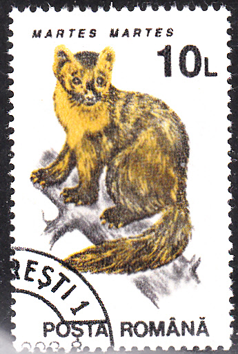 Hier sehen wir einen weiteren Baummarder (Martes martes) auf einer rumänischen Marke (MiNr 4901).