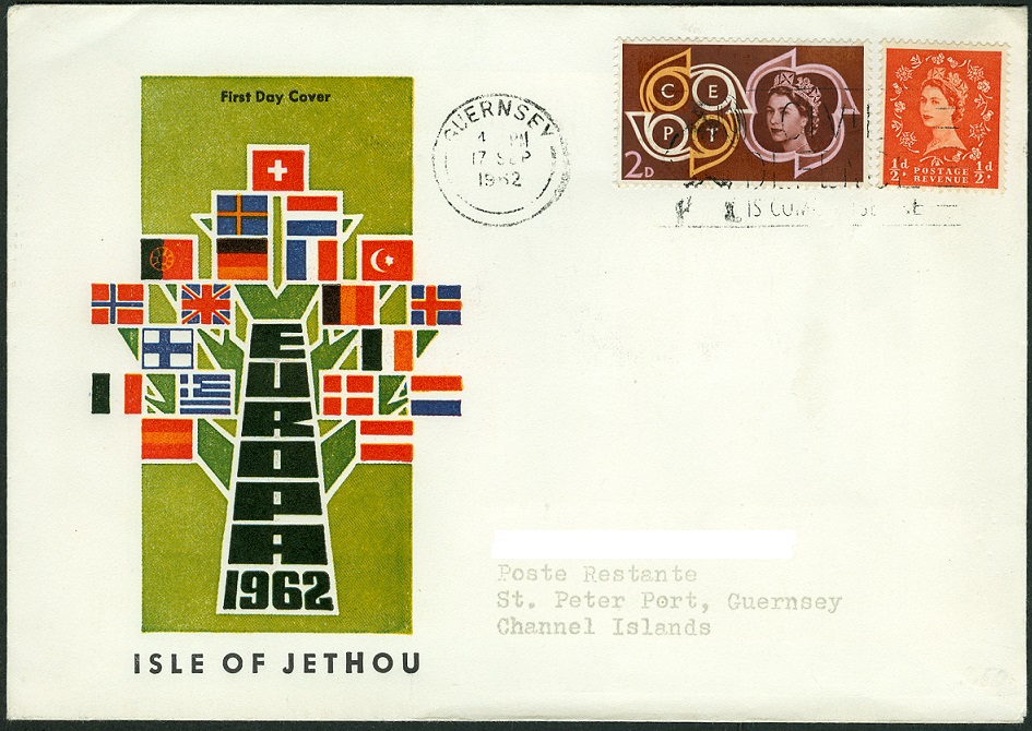 In den 50er und 60er Jahren war Jethou frei zugänglich für die Öffentlichkeit, und Lokalmarken wurden herausgegeben, um die Insel bekannter zu machen.