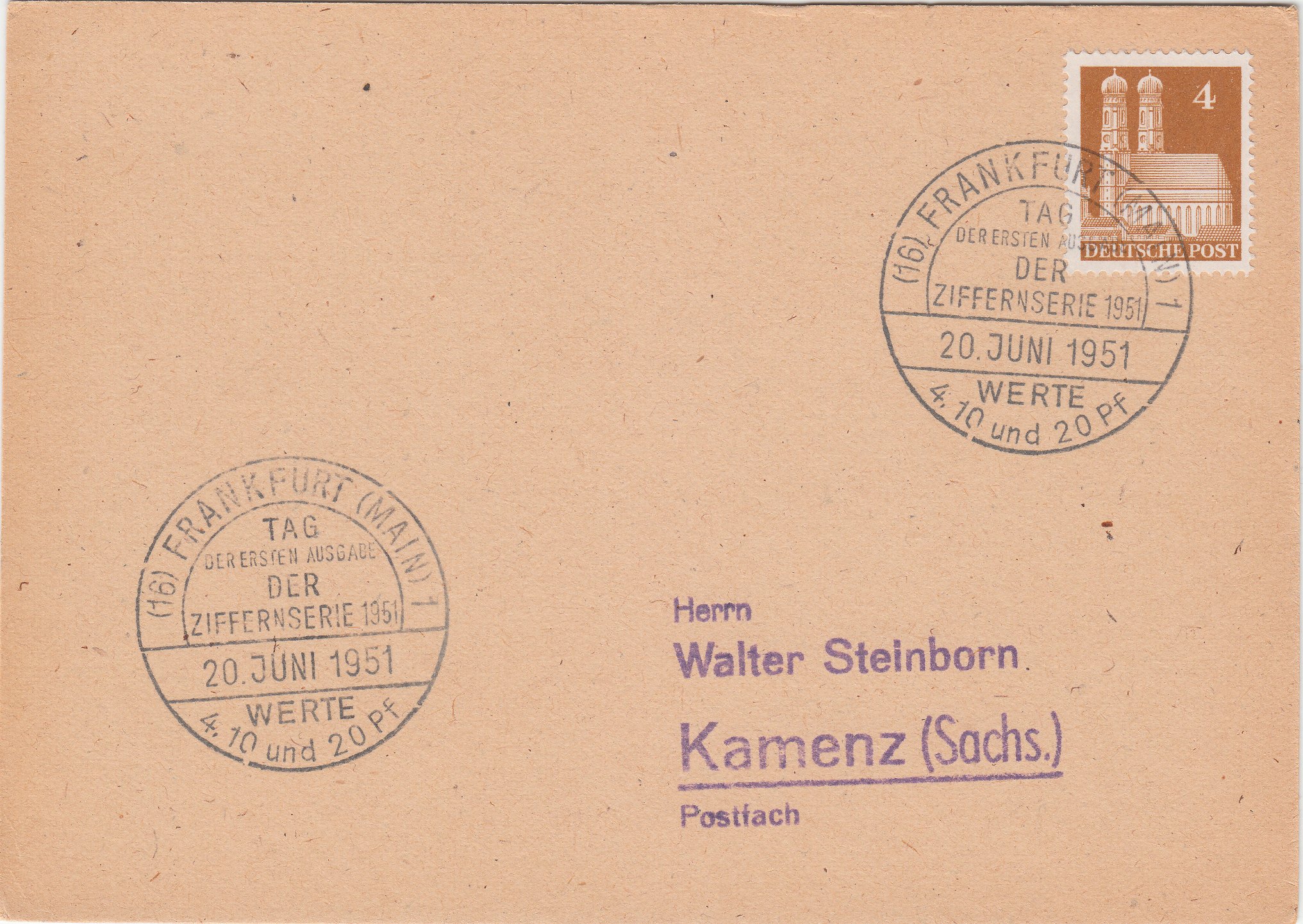 Philatelistisch "normal" wäre dabei selbstverständlich gewesen, als Frankatur für diesen Beleg eine 4 Pf Marke der Posthornserie zu nehmen und nicht, wie hier geschehen, eine 4 Pf Marke der Bautenserie!???