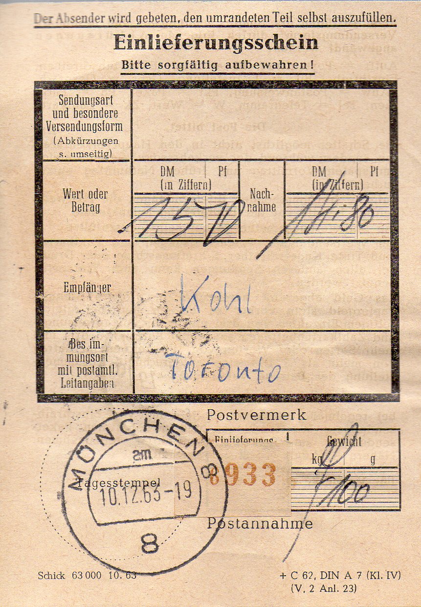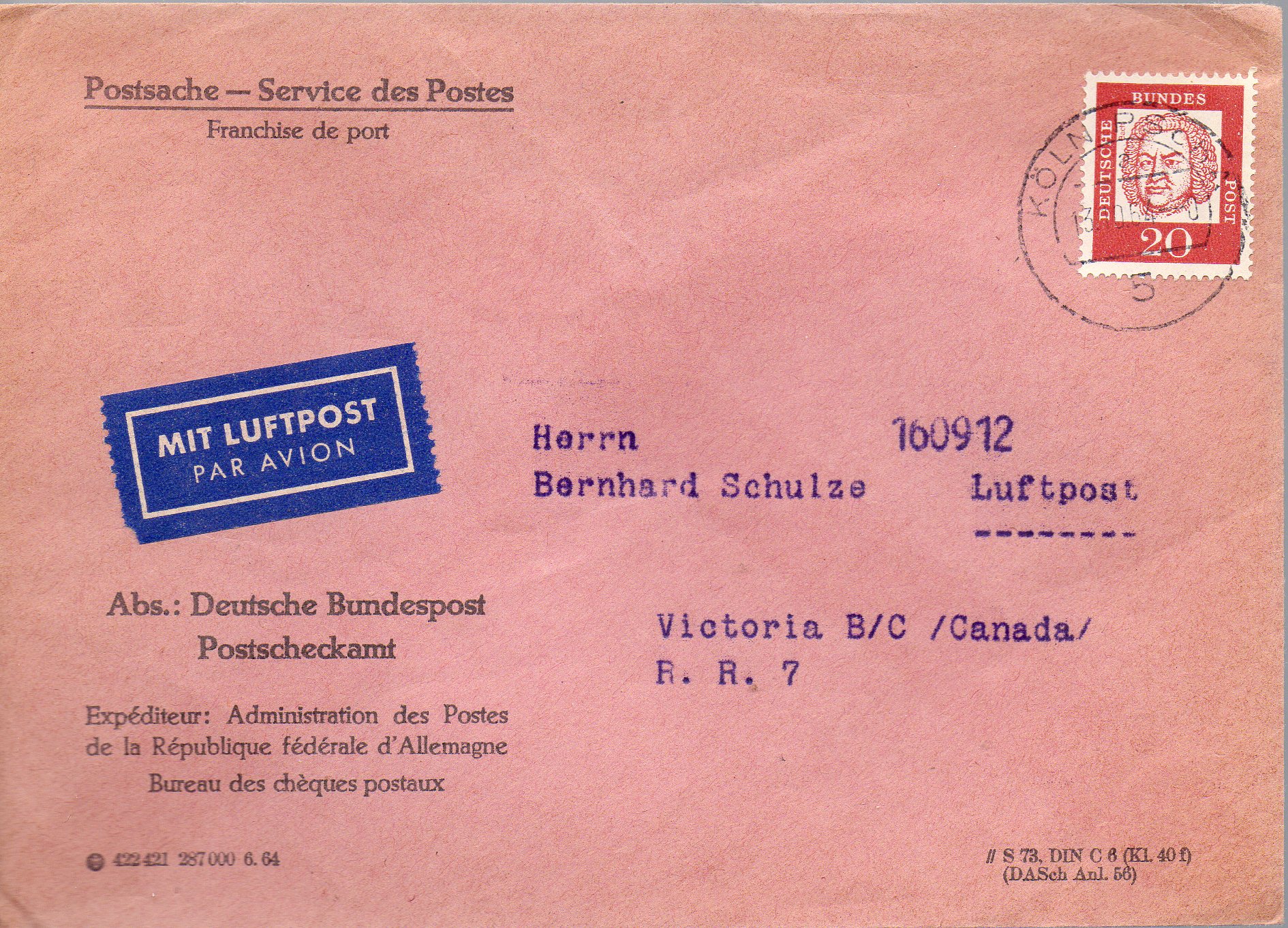 Einheiten der Dauerserie wurden meist von Sammlern verklebt, hier einmal ein Bedarfsbrief aus Bielefeld mit Nachgebühr, da das Sendungsgewicht über 20 g betrug.