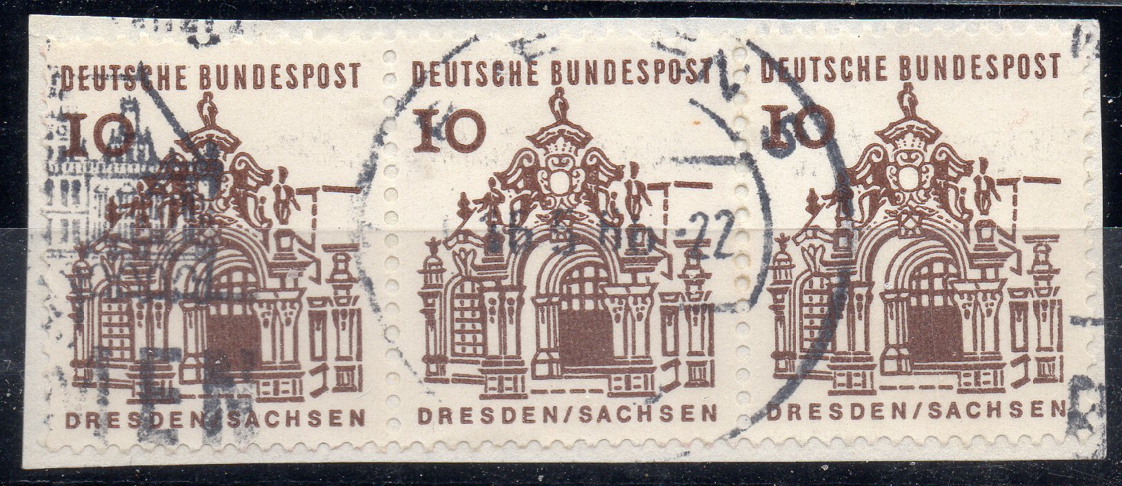 1964/1965 erschienen acht Wertstufen der Dauerserie "Deutsche Bauwerke aus 12 Jahrhunderten" im kleinen Format. Diese Serie wurde aber bereits ab 1966 durch die größere Version abgelöst, die graphisch nicht mehr ganz so einfach aussah.