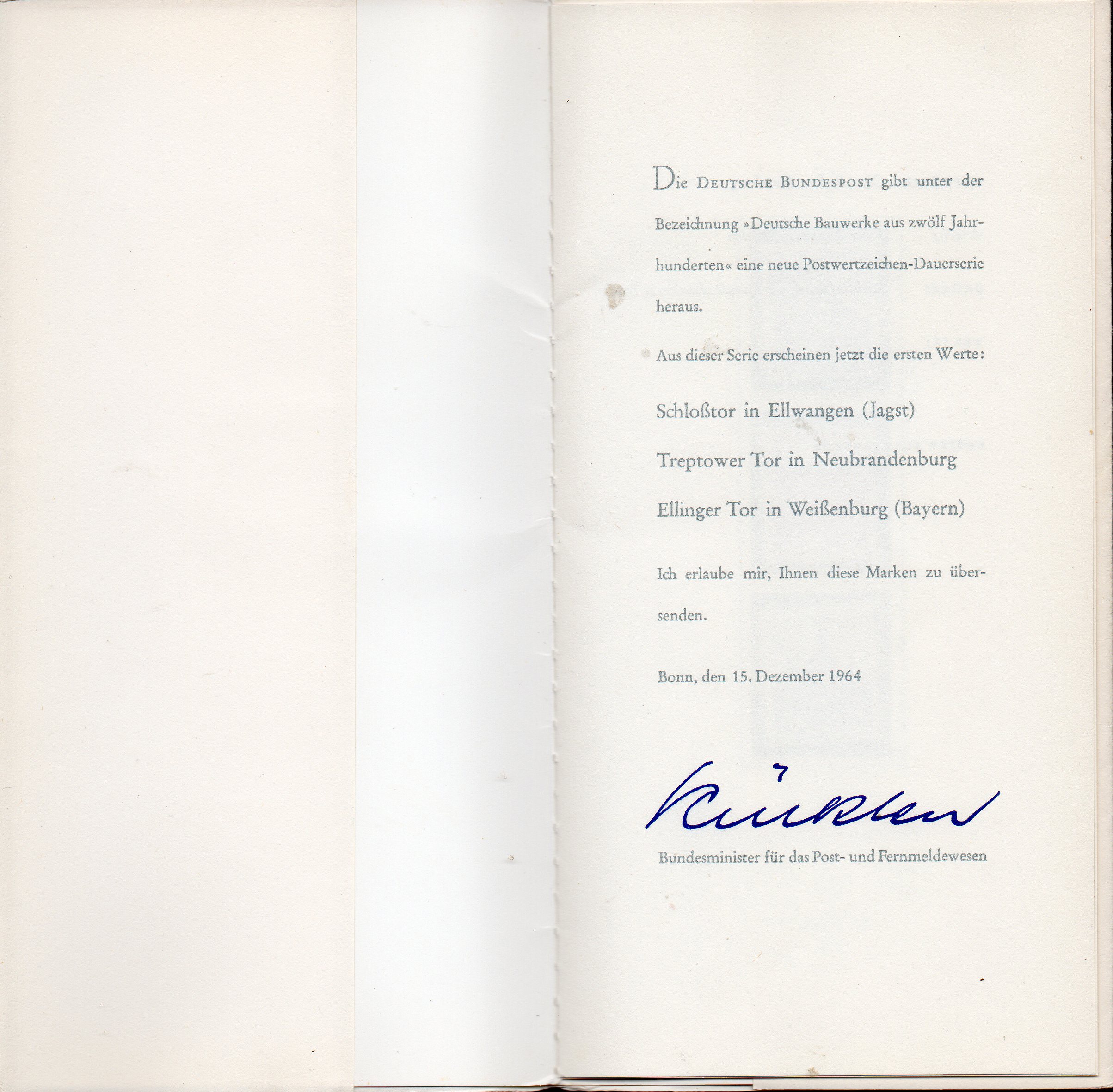 Ministerheft mit den ersten erschienen Werten vom 15. Dezember 1964