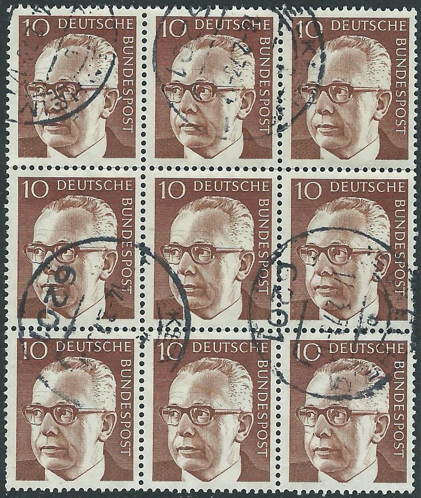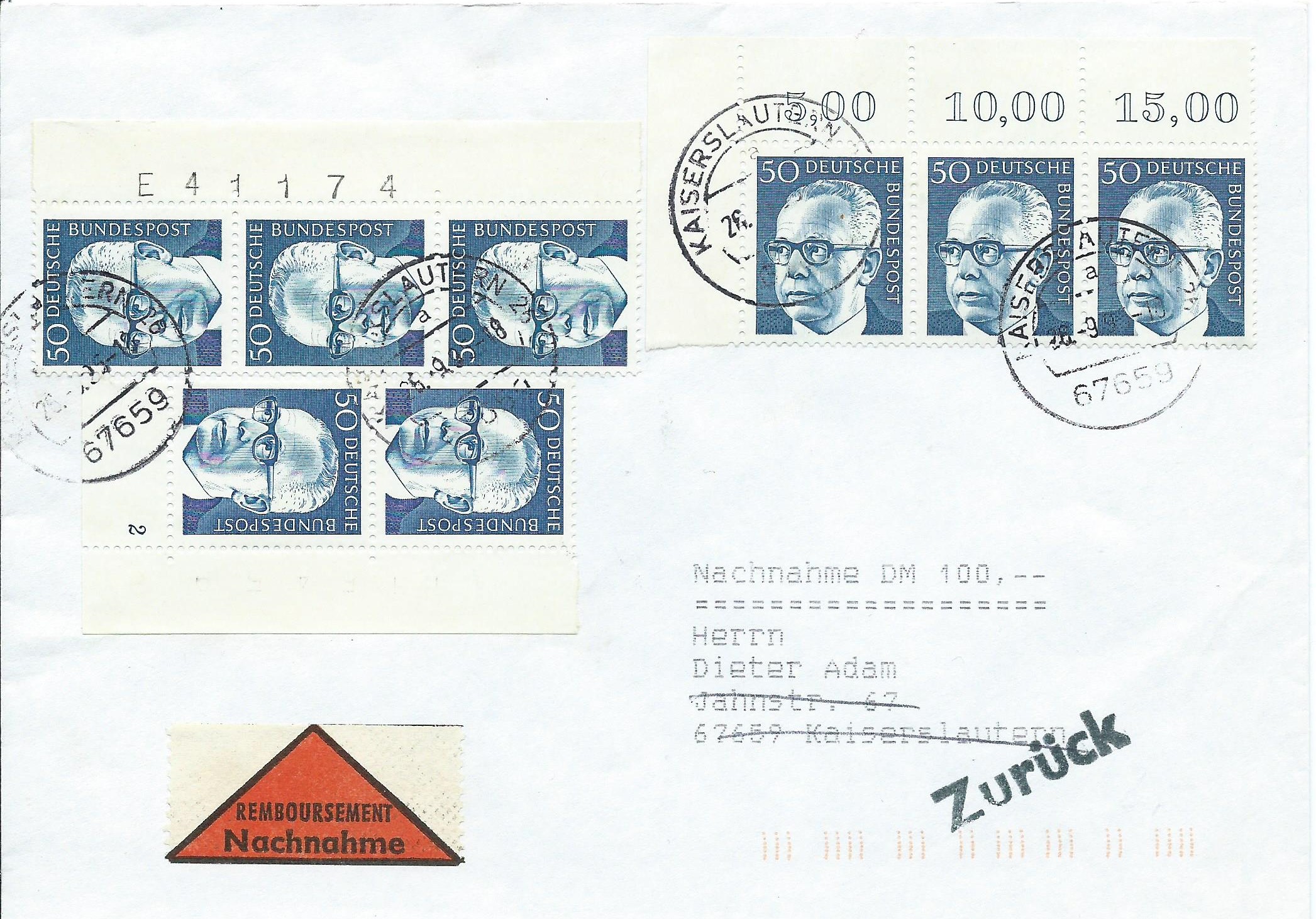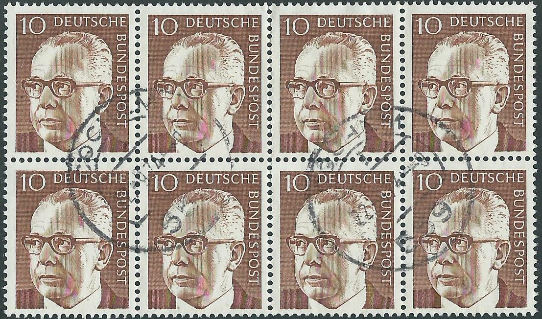 Zum einen eine grosse Einheit der Wertstufe 2 DM. Es handelt sich um einen gestempelten 15-er-Block, der immerhin 30 DM Frankaturwert hatte. Vermutlich klebte er auf einer Paketkarte, da kamen ja höhere Portostufen durchaus mal vor. Jedenfalls hat er jetzt den Weg in mein Album angetreten.