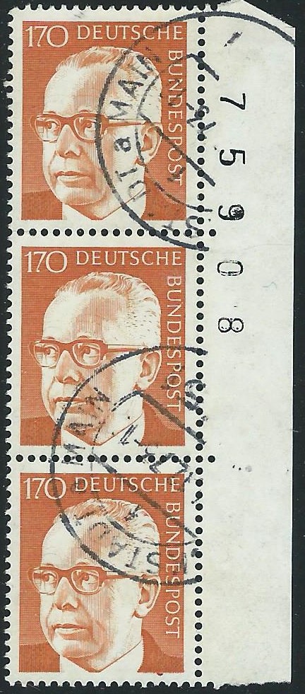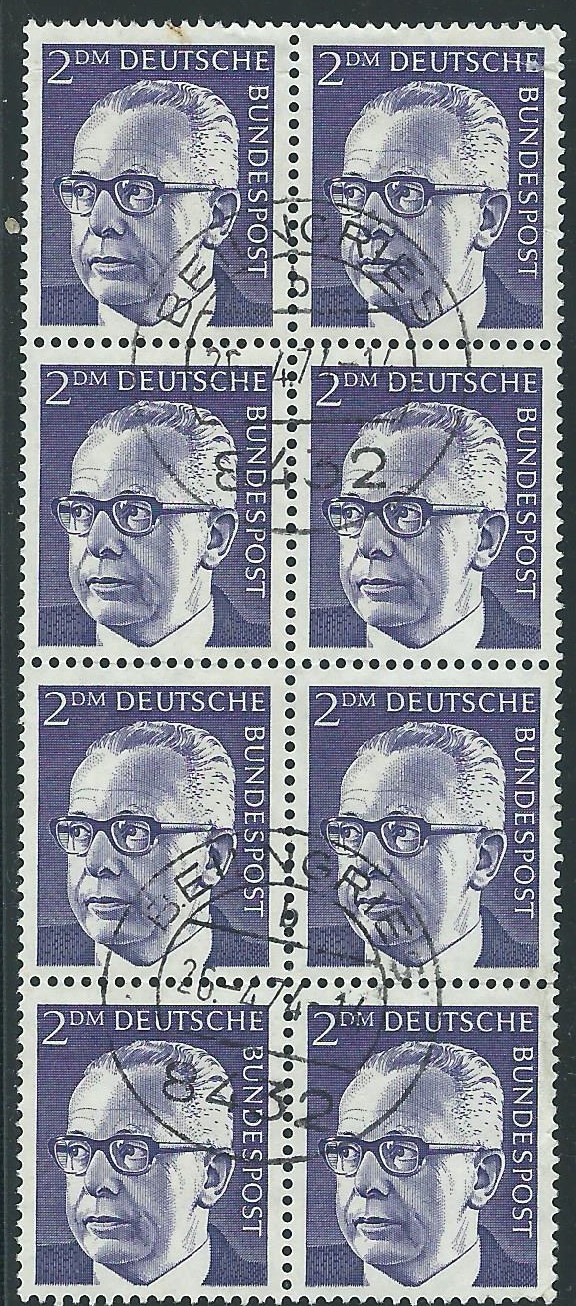 mal wieder ein klassischer Fall von Aufbrauch: 20 Marken zu 5 Pf auf einem Standartbrief, gestempelt am 29.9.95 in Berlin. Mich hat der Beleg angesprochen, weil die Marken als Einheit aus der linken oberen Bogenecke verklebt wurden. Auch wenn die Marken erst so spät nach ihrer Ausgabe genutzt wurden, eine attraktive Verwendung ist das allemal.