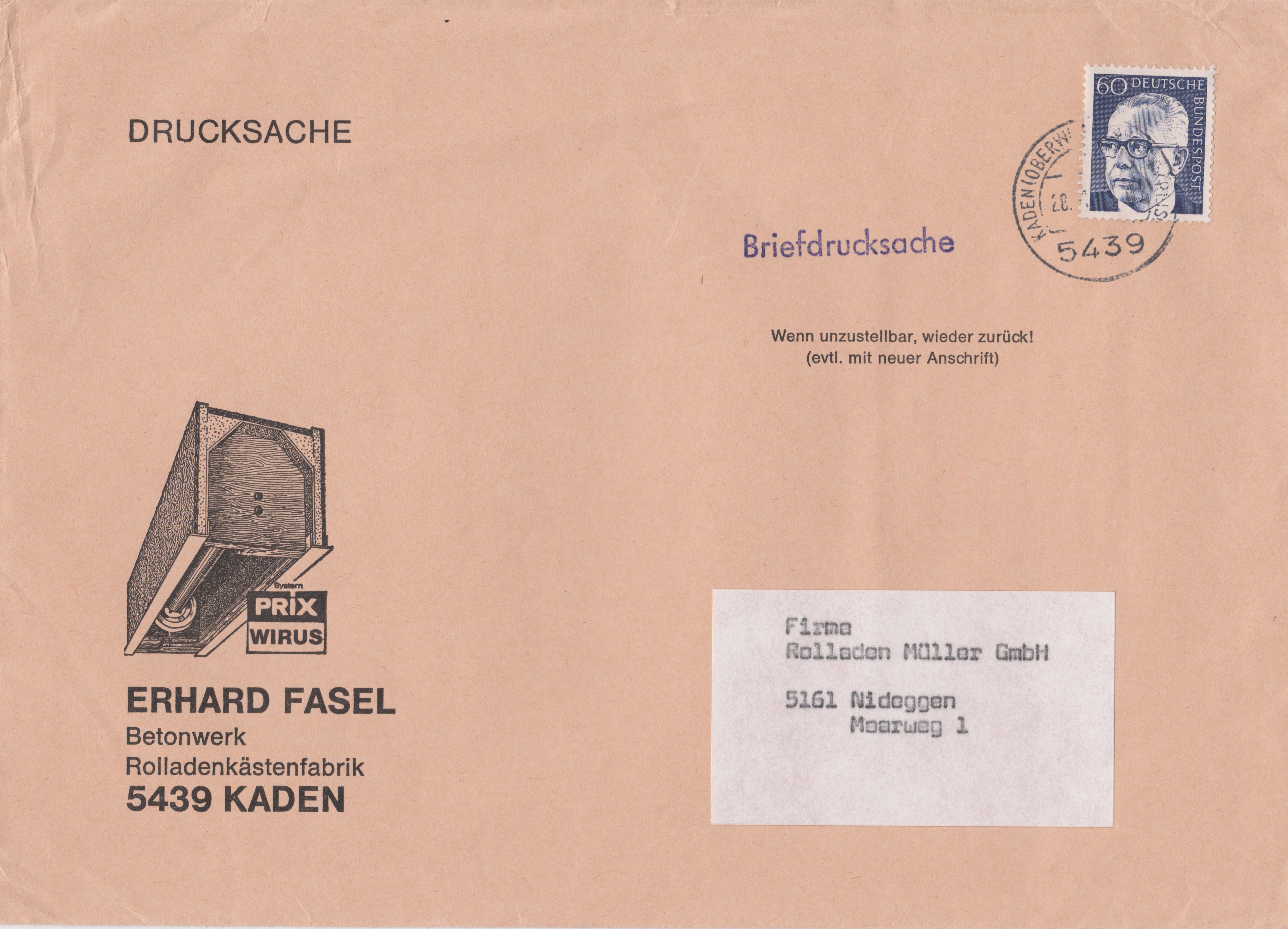 Briefdrucksache, Einzelfrankatur 60 Pf Dauerserie Heinemann: