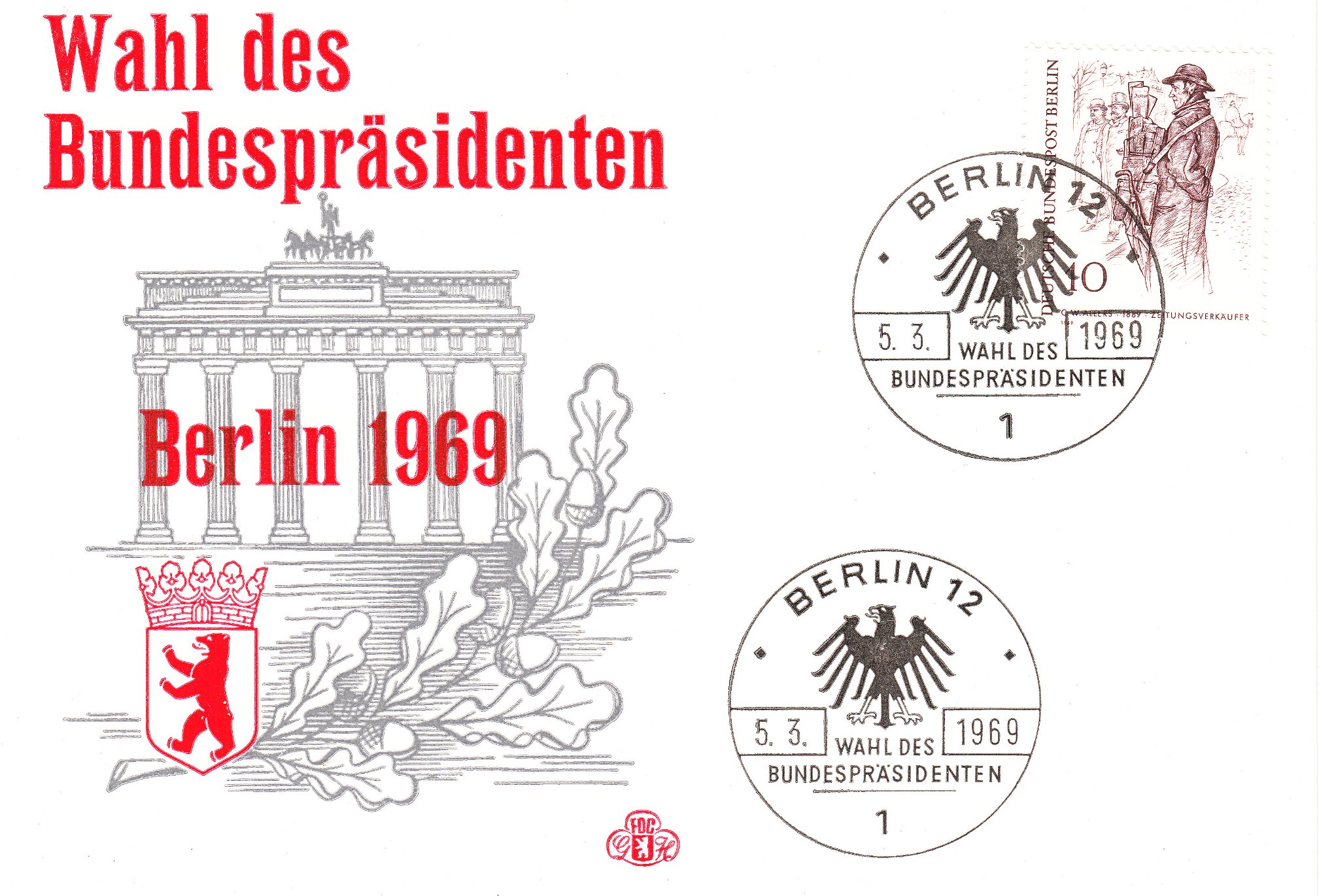 Zum Thema der Wahl zum Bundespräsidenten am 05.03.1969 des auf den Postwertzeichen der Dauerserie Heinemann noch zu seinen Lebzeiten dargestellten Bundespräsidenten Heinemann passt dieser Beleg: