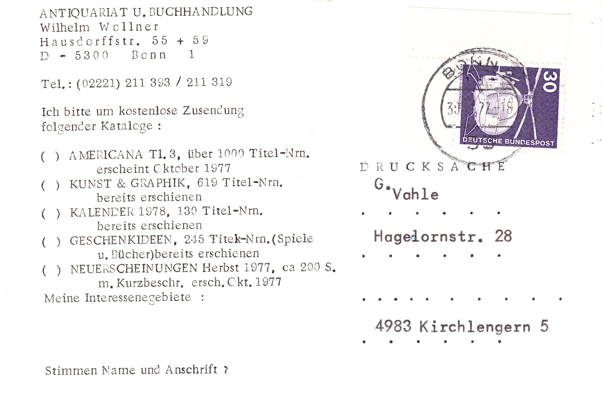 Heute auf dem Flohmarkt in Rheine für 0,30 € aus einer Grabbelkiste für Ansichtskarten befreit habe ich diese Postkarte, die nach Wien in Österreich adressiert am 27.07.1981 mit 60 Pfennig portorichtig zu dem ab dem 01.07.1981 gültigen Tarif frankiert wurde, wobei eine MiNr. 990 vom Oberrand mit Reihenwertzahl "36,00", also von Feld 6 des Bogens stammend, als Frankatur diente: