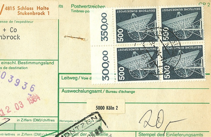 Viererblocks der 500er sind auf Paketkarten eine häufige Fundsache?