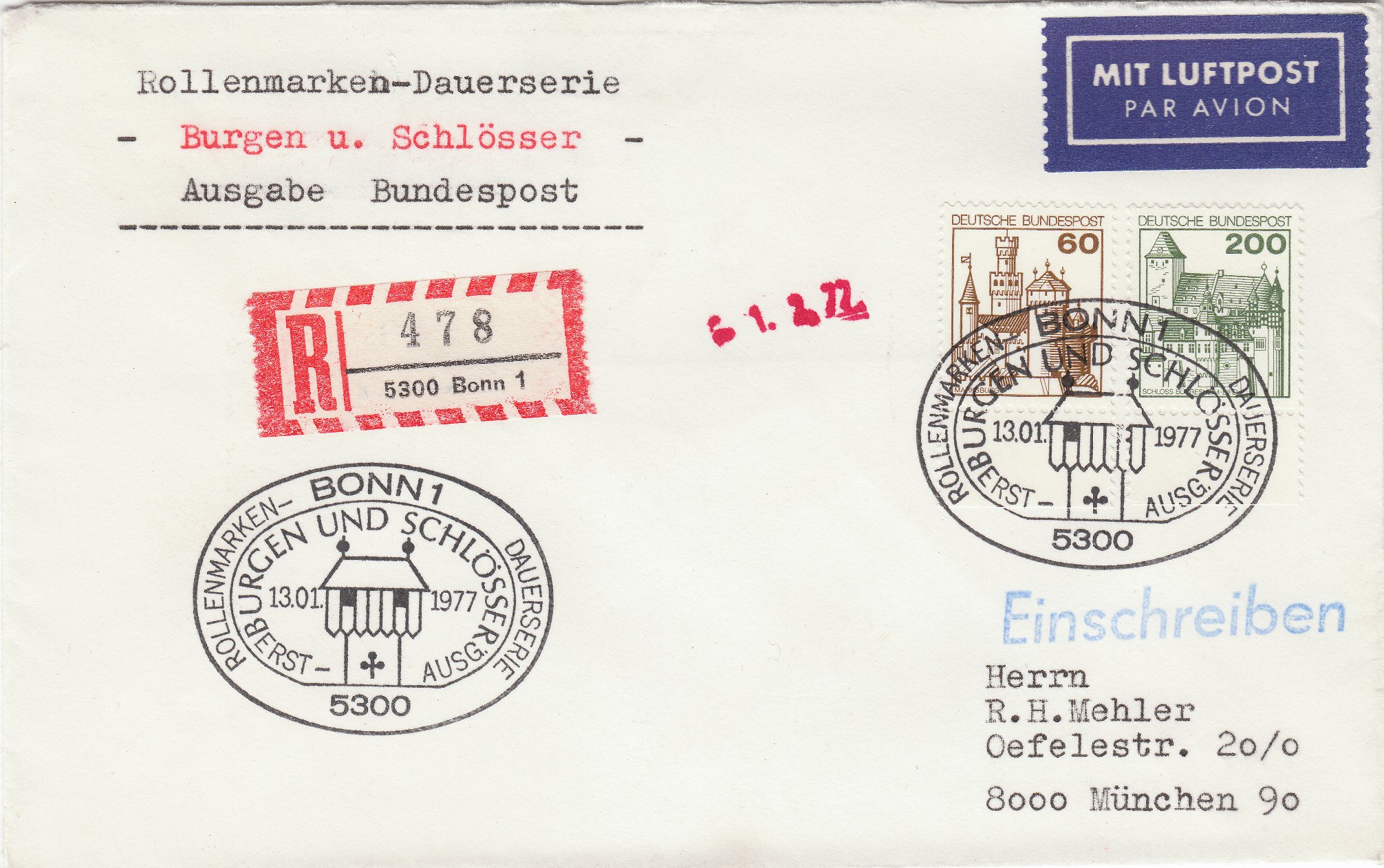 Werbeumschlag WU1, am 16.05.1980 portorichtig frankiert als Fernbrief (60 Pf) per Einschreiben (150 Pf):