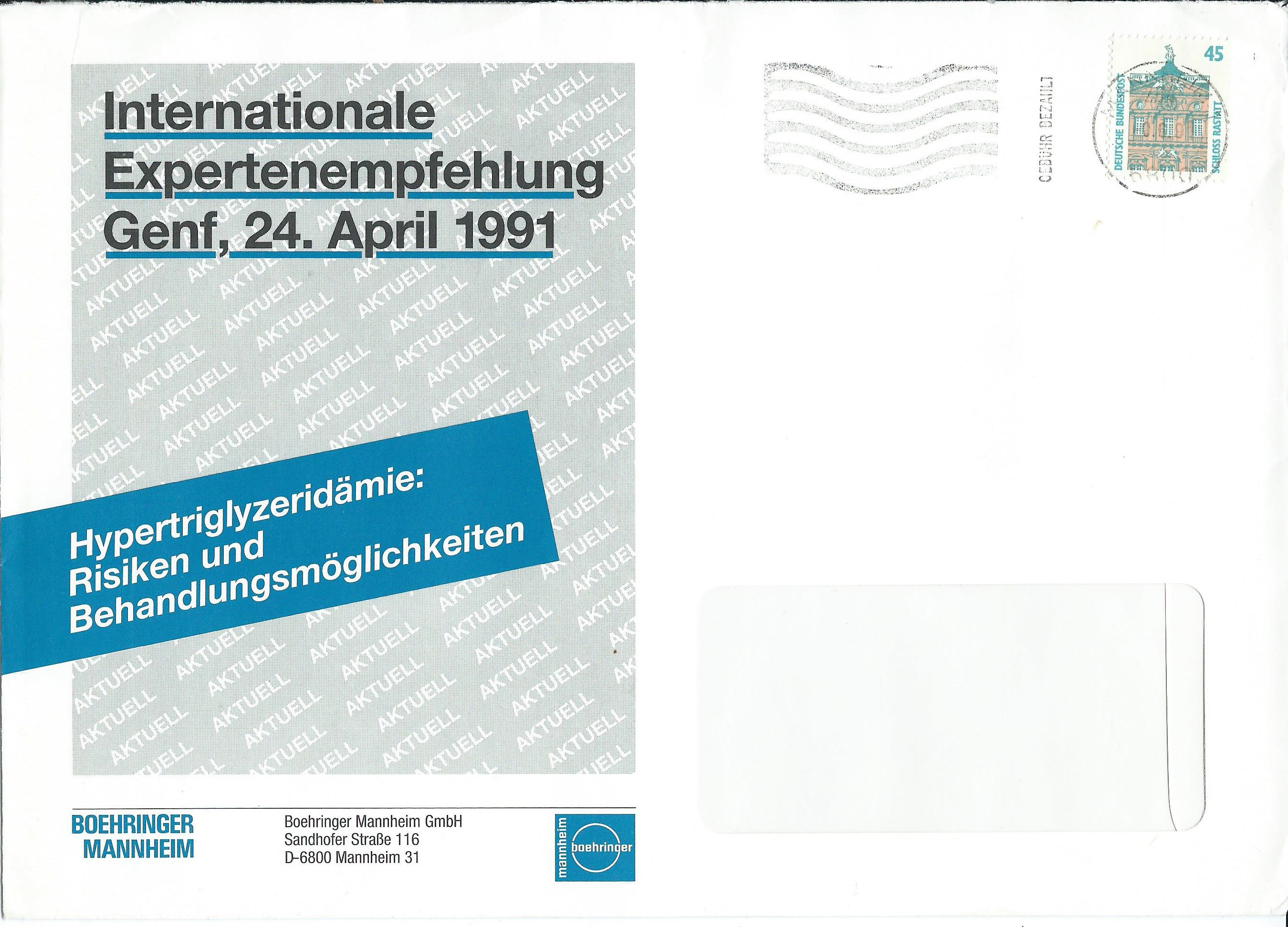 Und da kommt auch gleich meine Frage ins Spiel: Sind die (gerade die hier noch kommenden krummen Portostufen) überhaupt Portorichtig? Zum Beispiel die 40, 45, 50 und 60 Pf-Frankaturen kennt man ja eigentlich nur von den kleinen Umschlägen und hier sind sie auch auf den grossen „Tapeten“. Mein momentan einziges greifbares Nachschlagewerk „Michel-Spezial“ gibt da nicht so richtig etwas her. Ich ärgere mich schon wieder richtig, dass ich mein Michel- Handbuch Postgebühren verliehen habe, immer wenn man mal was braucht, ist es nicht da…