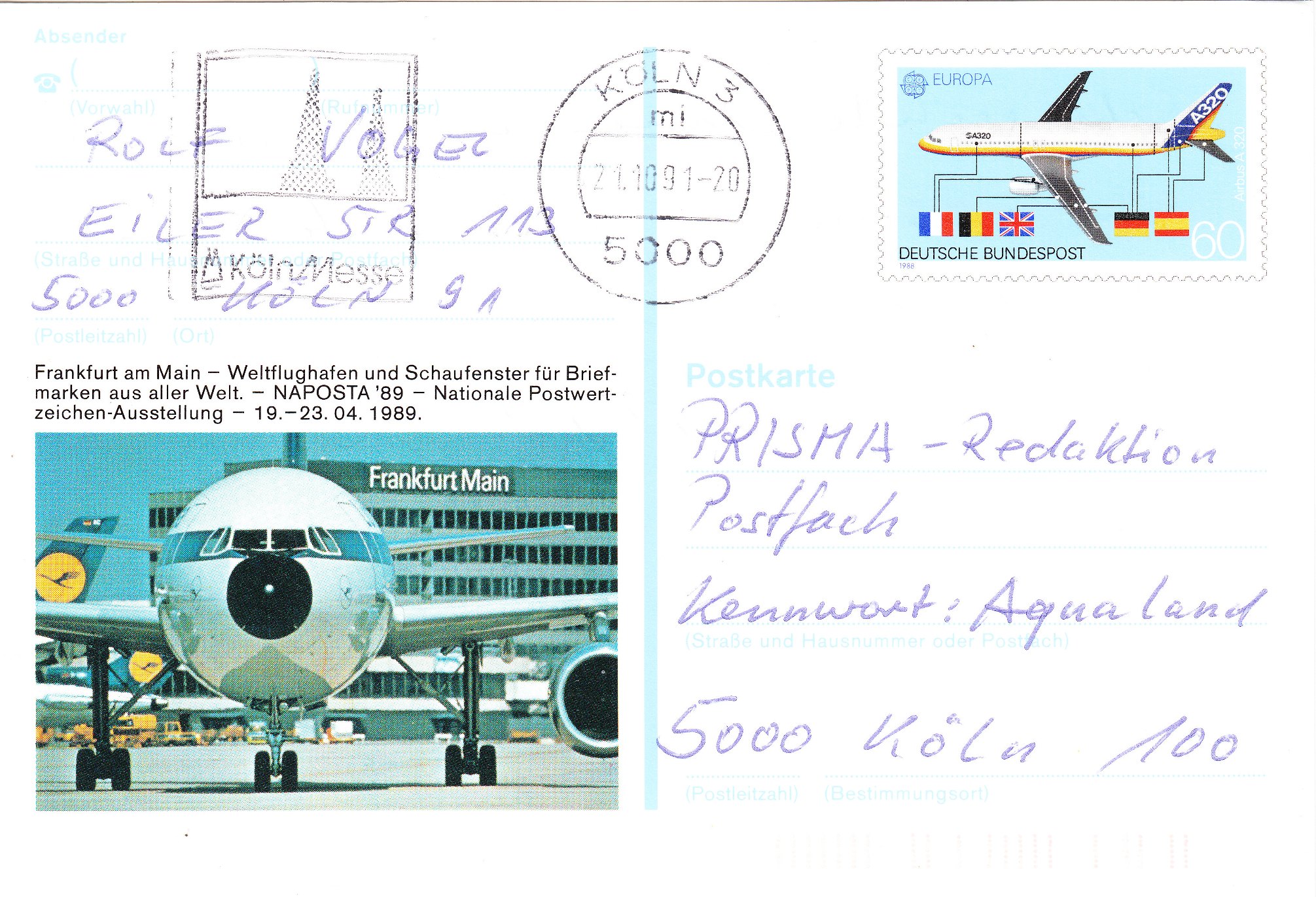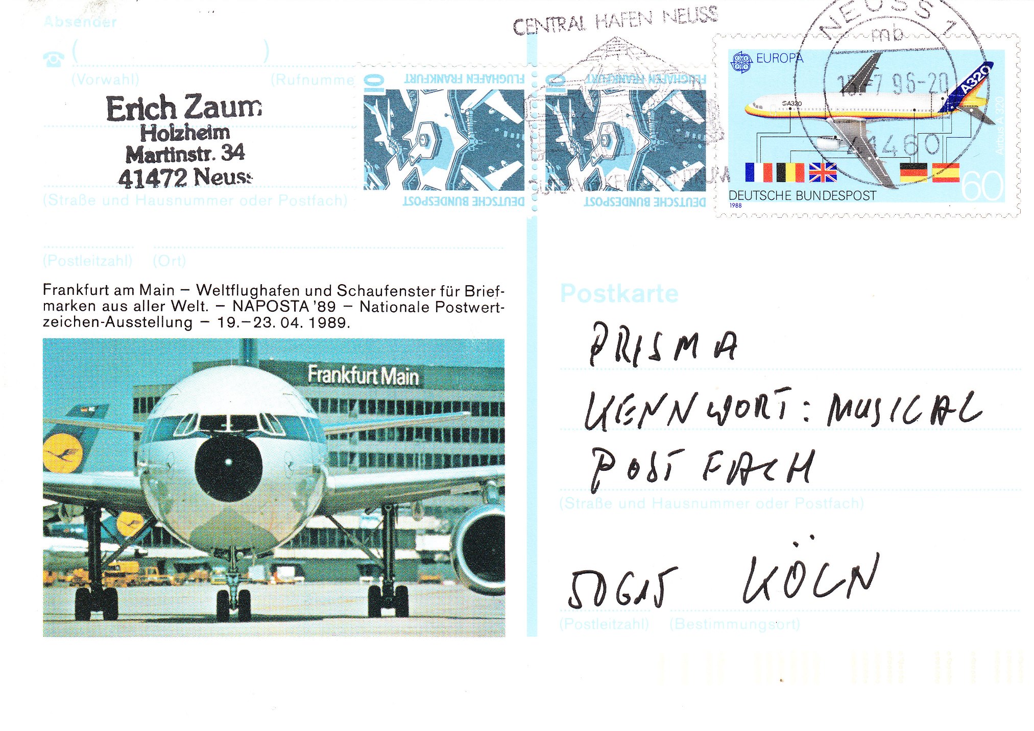 Diese Postkarte mit Sonderwertstempel, MiNr. PSo 17, erschien am 19.04.1989 anläßlich der NAPOSTA ´89 in einer Auflage von 660.000 Stück: