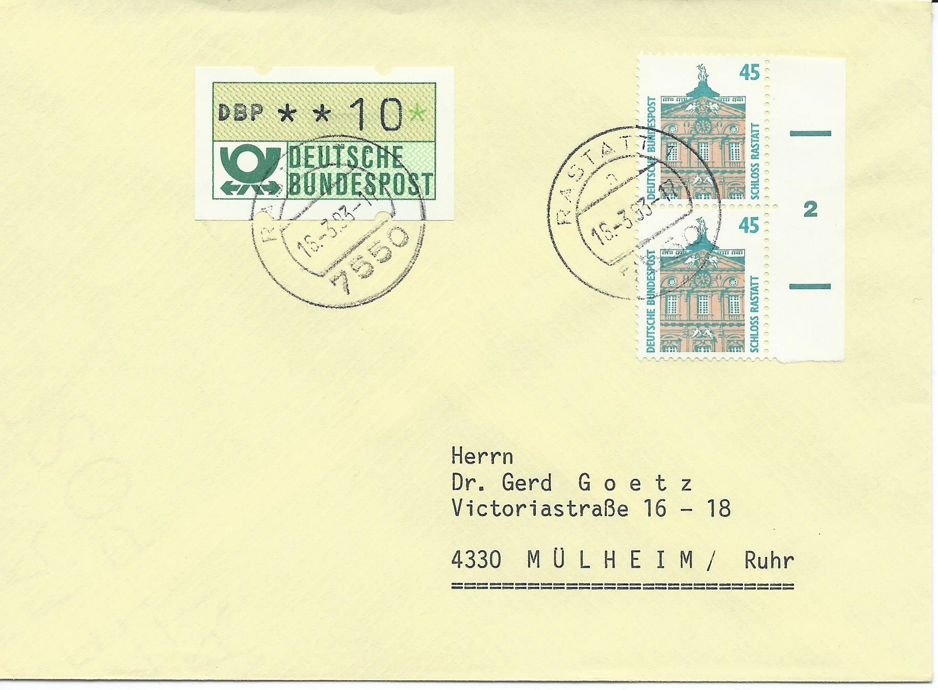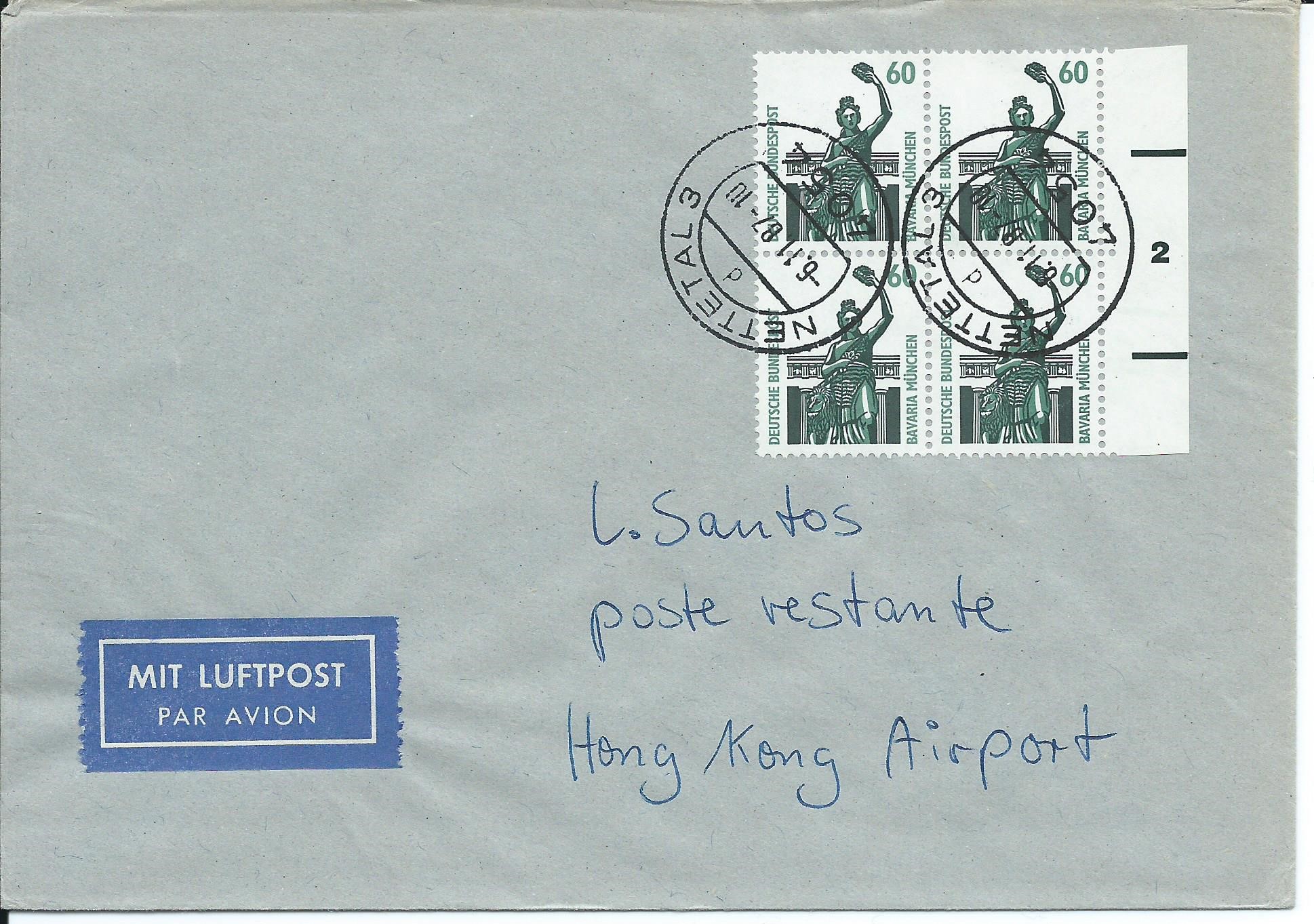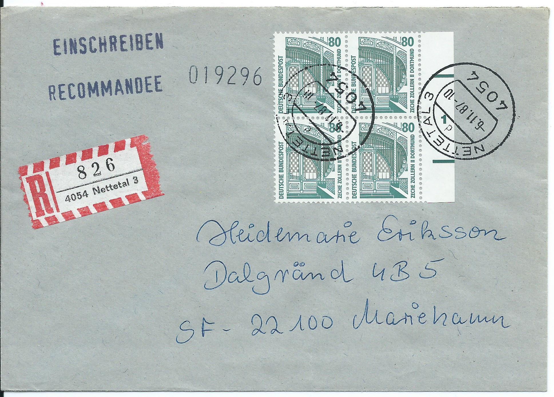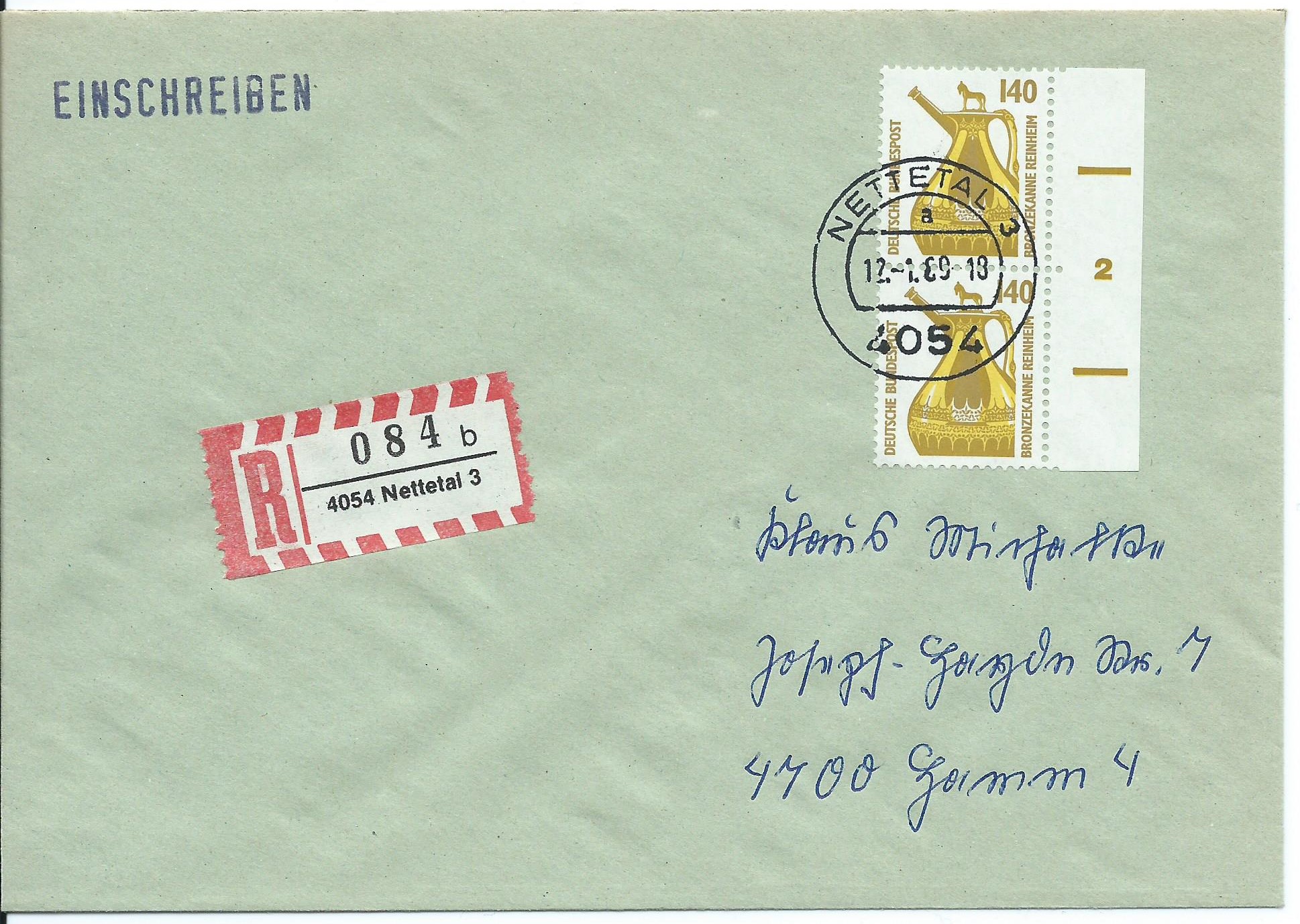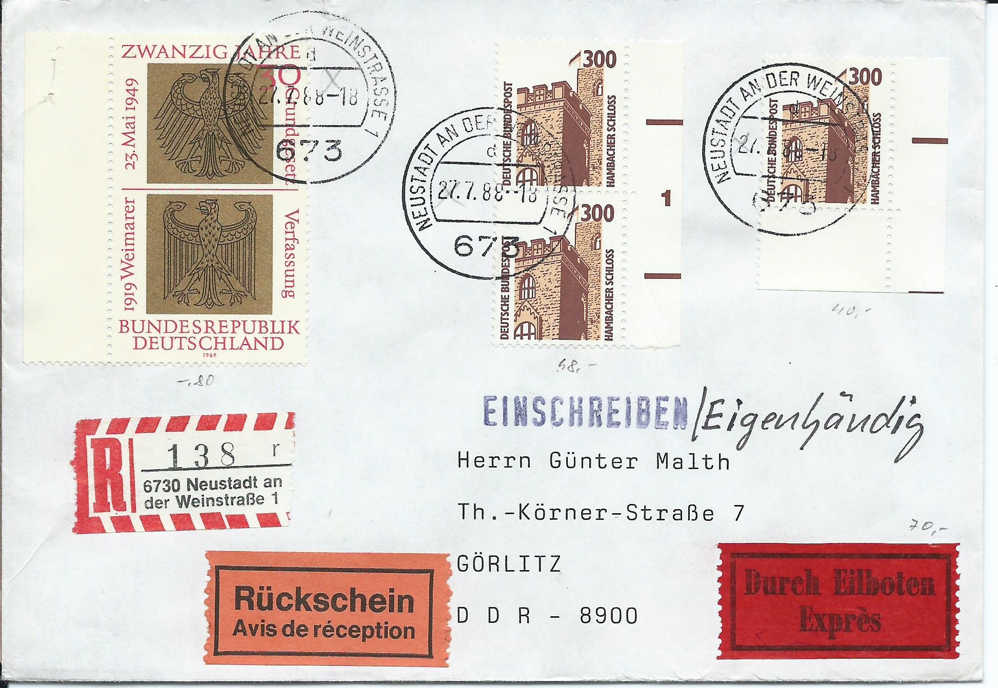 Nun folgend ein Einschreib-Brief mit der 60 Pf. Hier wurde ein 5-er-Block (na ja, eher ein 4-er-Block mit einer zusätzlich anhängenden Marke