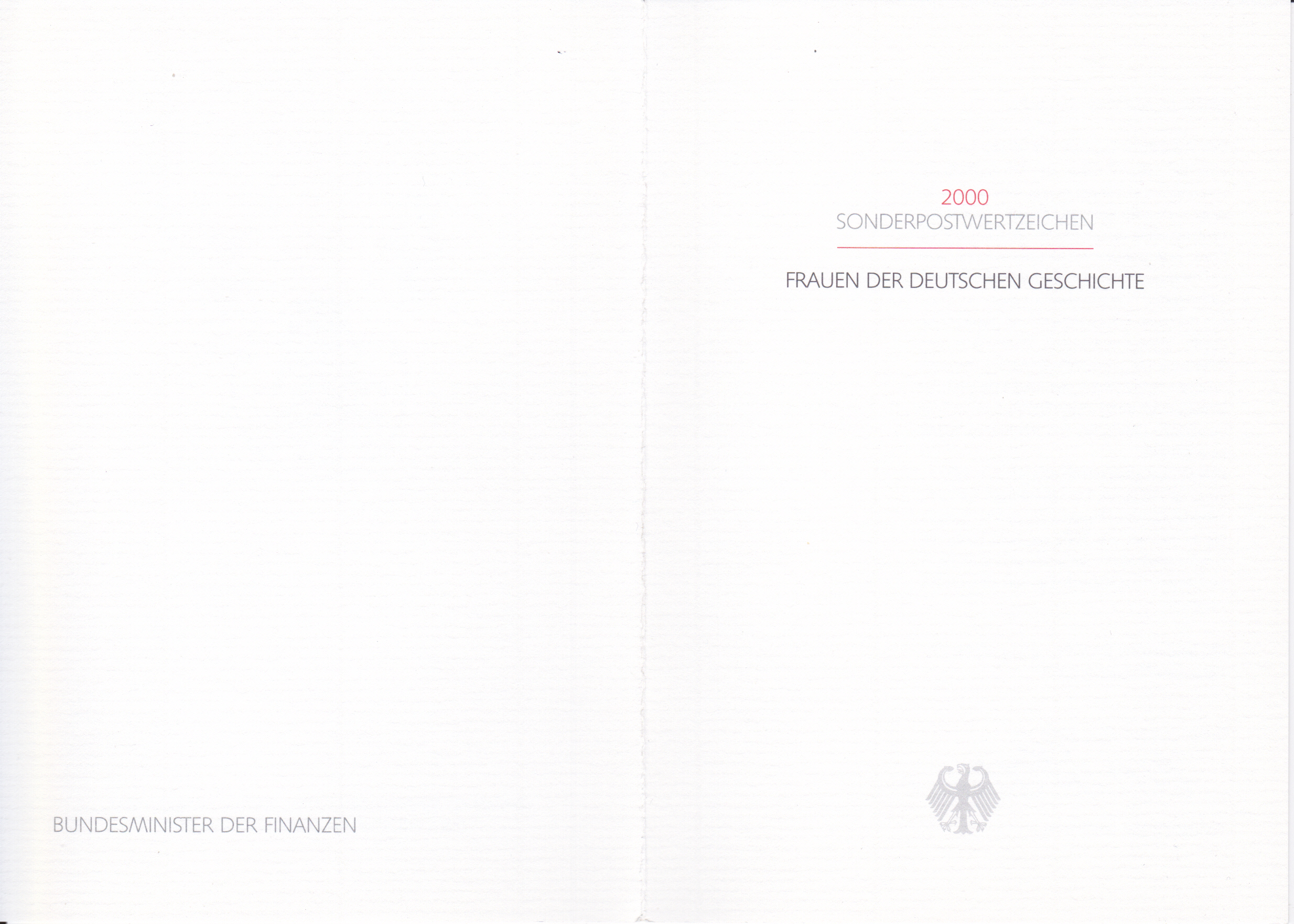 Ministerkarte des Finanzministers mit je einer Marke zu 100Pf/0,51€ und 110Pf/0,56€ (MiNr 2149 und 2150) der Dauerserie "Frauen der Deutschen Geschichte" und dem Ersttagsonderstempel Berlin.