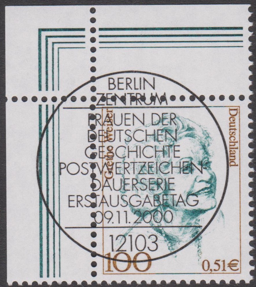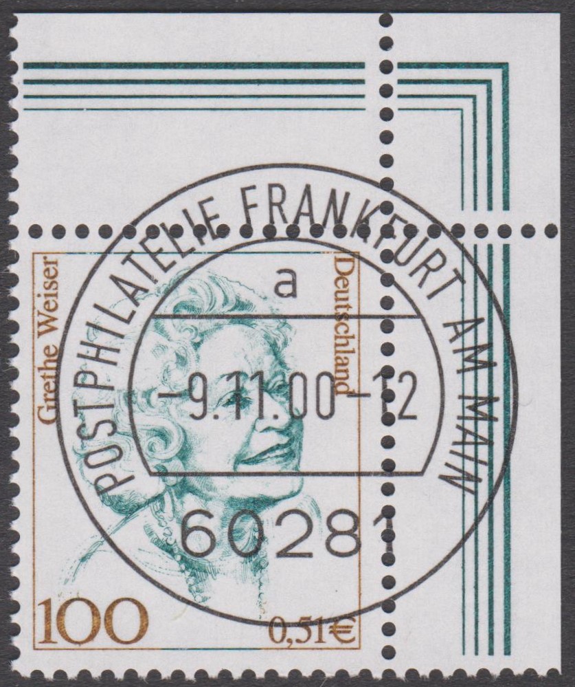 MiNr. 2149, rechte obere Bogenecke mit EST POSTPHILATELIE FRANKFURT AM MAIN: