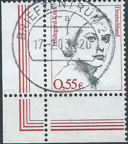 Der Wert zu 55 ct aus der linken unteren Ecke vom 10-er-Bogen, er wurde am 17.02.03 im Briefzentrum 24 gestempelt.