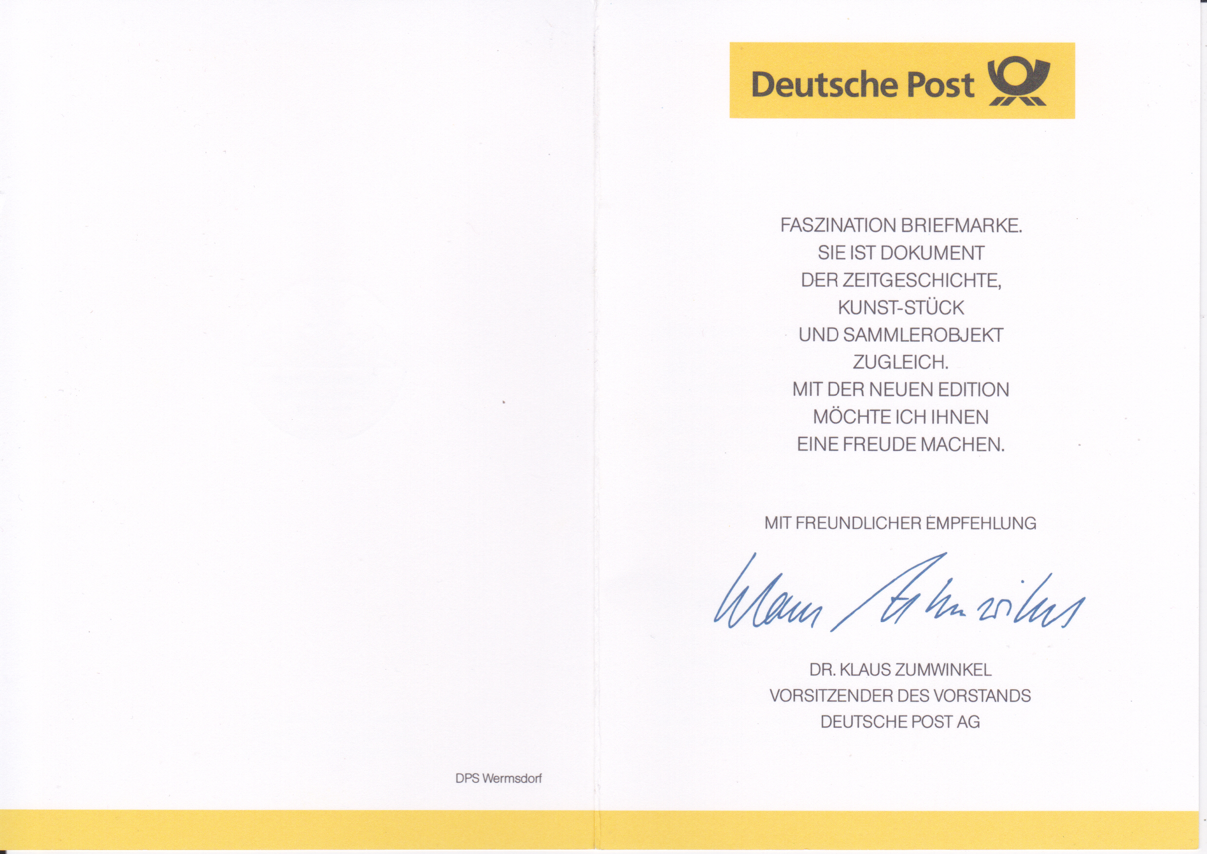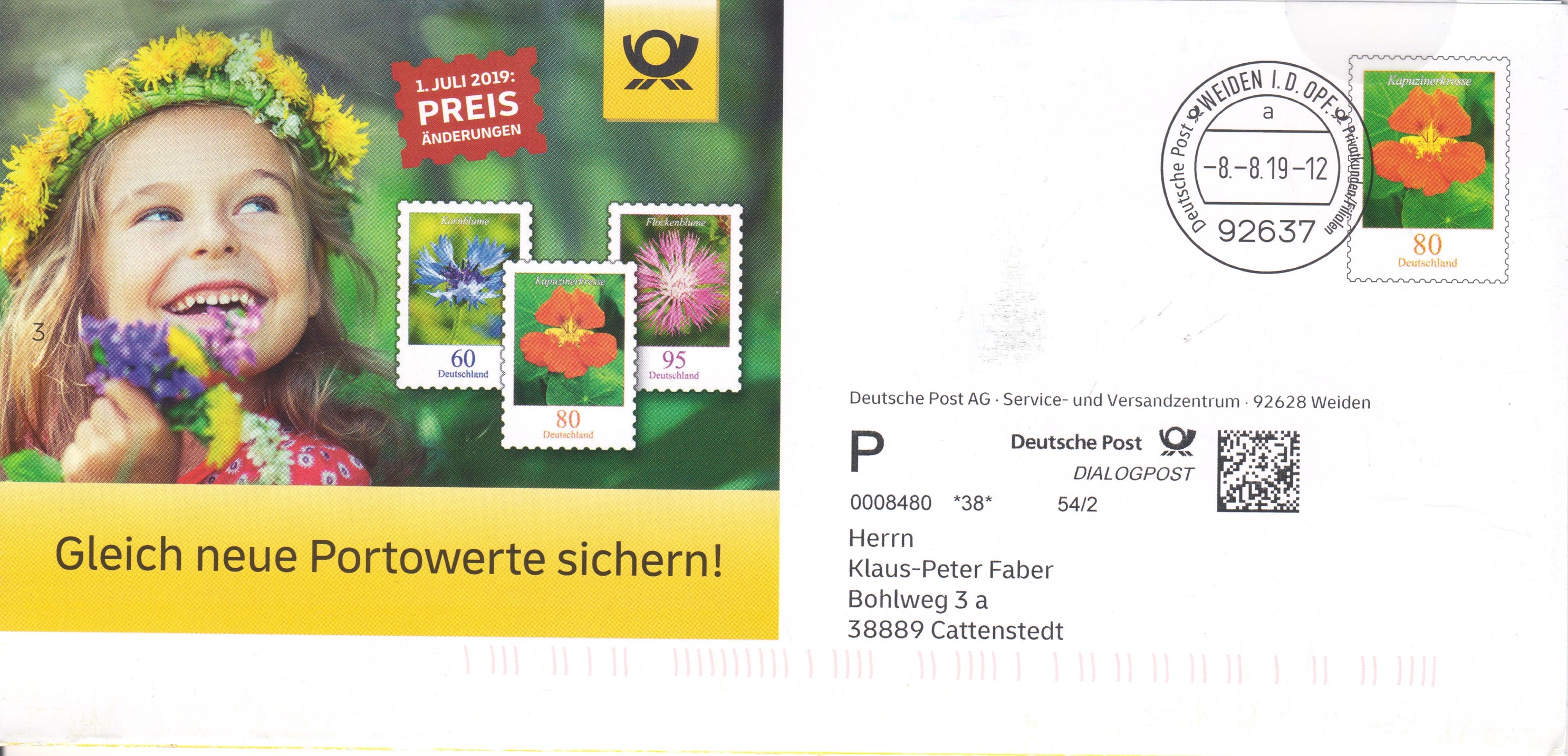 DIALOGPOST mit Absenderangabe "Deutsche Post AG Service- und Versandzentrum" mit Werbung "Gleich neue Portowertesichern!":