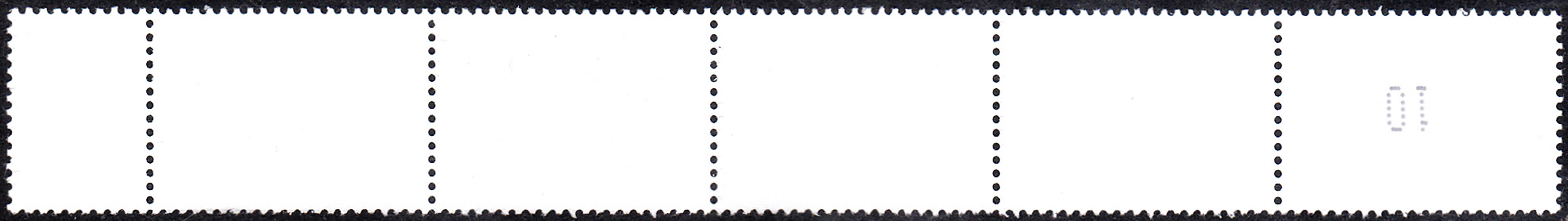Diese Marke gibt es auch in Rollen zu 200 Stück. Hier ein Fünferstreifen mit EAN-Code und einer Marke mit rückseitiger Nummer.
