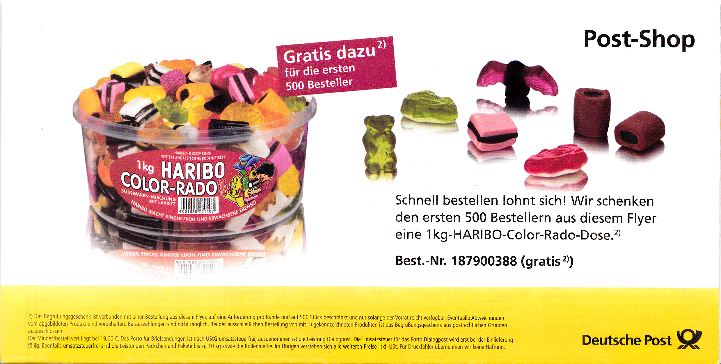 Faltbrief 210 mm x 108 mm mit Wertstempel aus der DS "Blumen" zu 28 Cent "Echtes Tausendgüldenkraut (Centaurium erythraea)" mit einer Frankierwelle "Dialogpost". Es ist kein Versanddatum zu erkennen. Es lässt sich nur wegen der beworbenen Markenausgabe der Versand auf Anfang März 2018 festlegen (Ausgabedatum der Peanuts-Marken 1.3.2018).