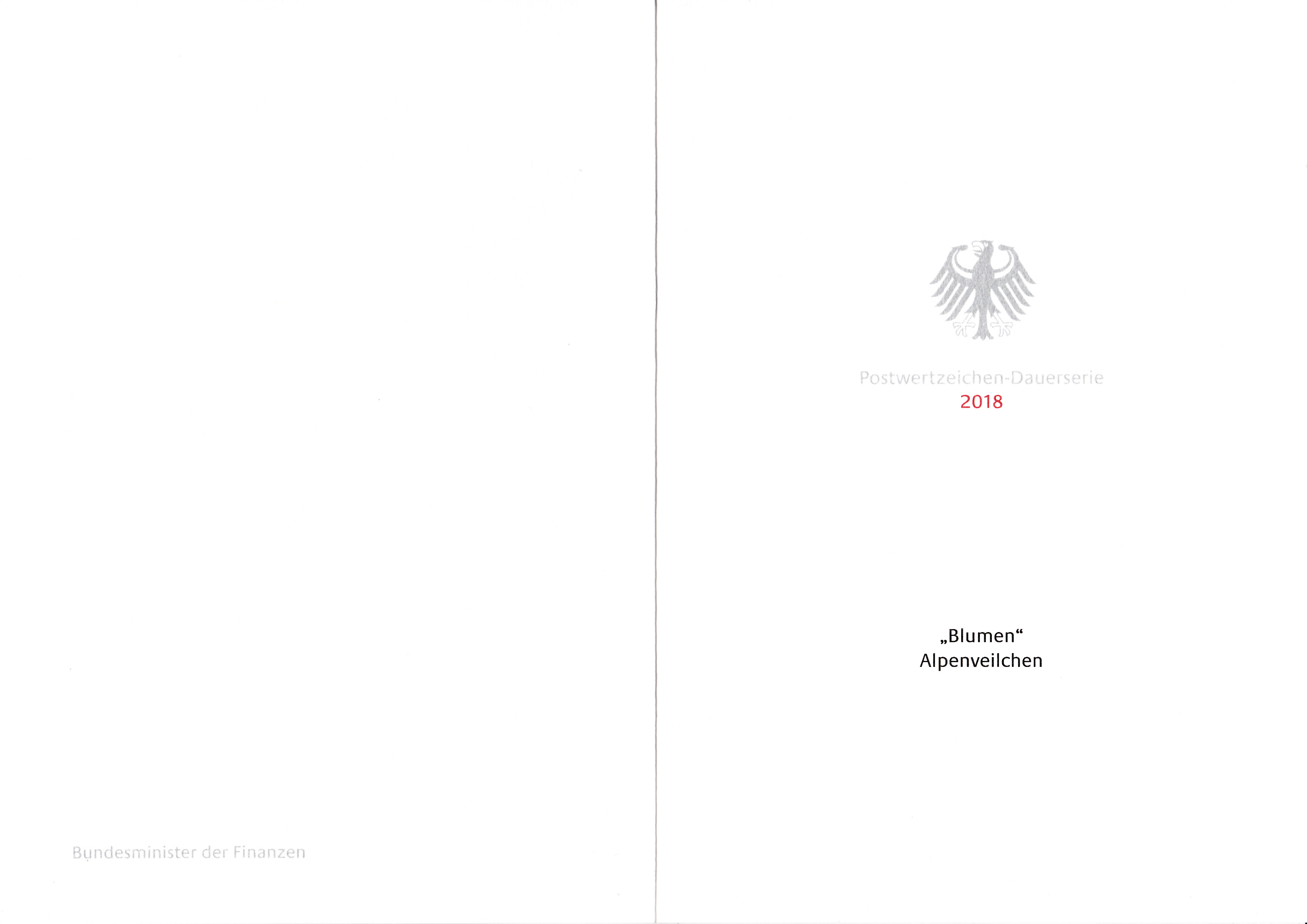 Ministerkarte des Finanzministers mit der Marke zu 1oo Cent (MiNr 3365) mit dem Motiv "Alpenveilchen" mit den beiden Ersttagsonderstempel Bonn und Berlin.