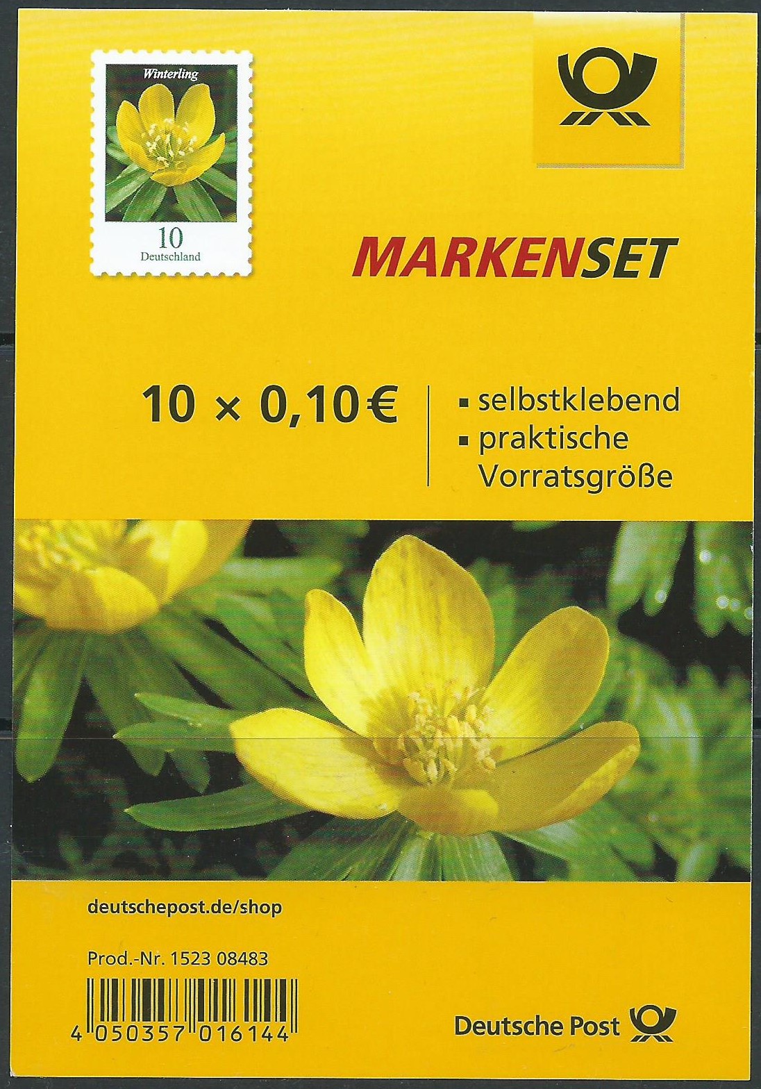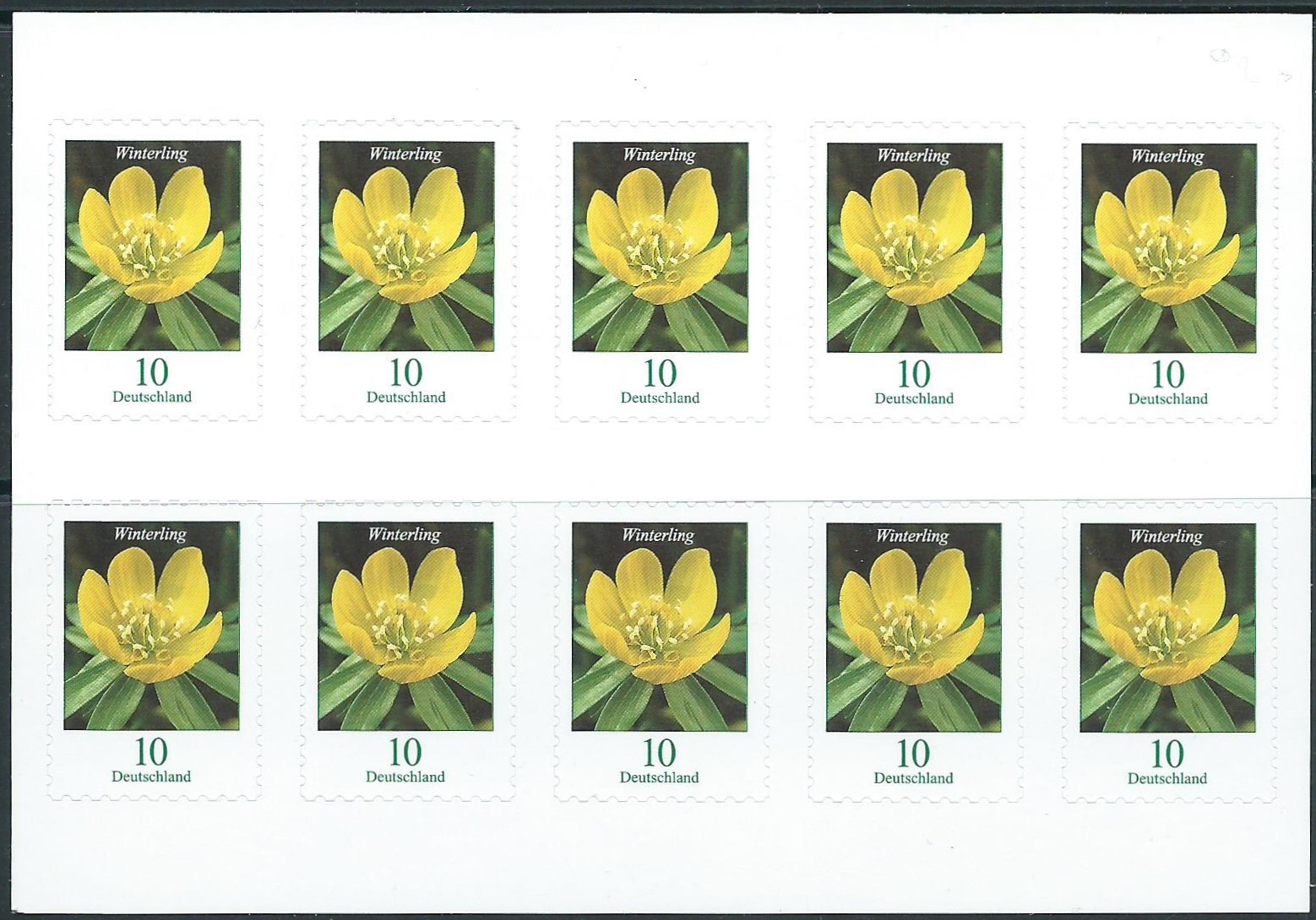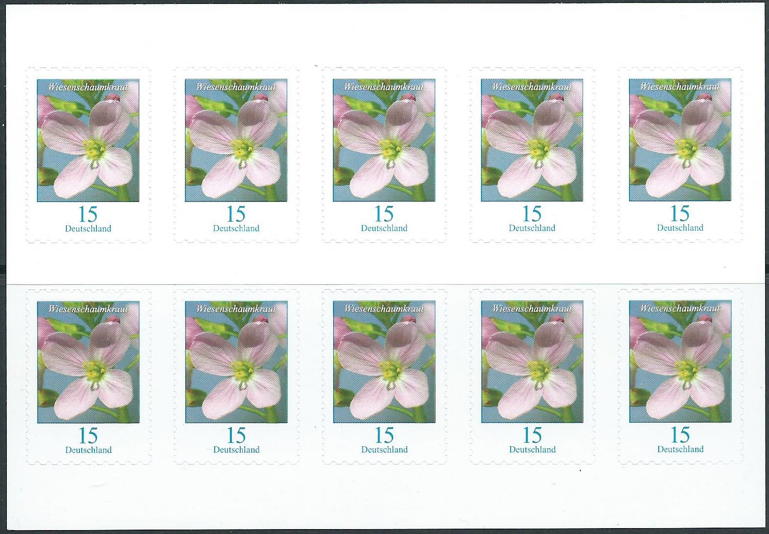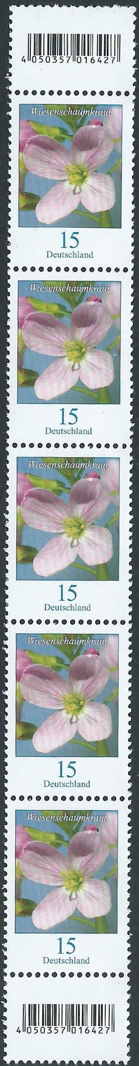 Hier nun der angekündigte Wert zu 15 Cent mit dem Motiv "Wiesenschaumkraut" (MiNr. 3424) im kompletten Zehnerbogen mit EAN-Code: