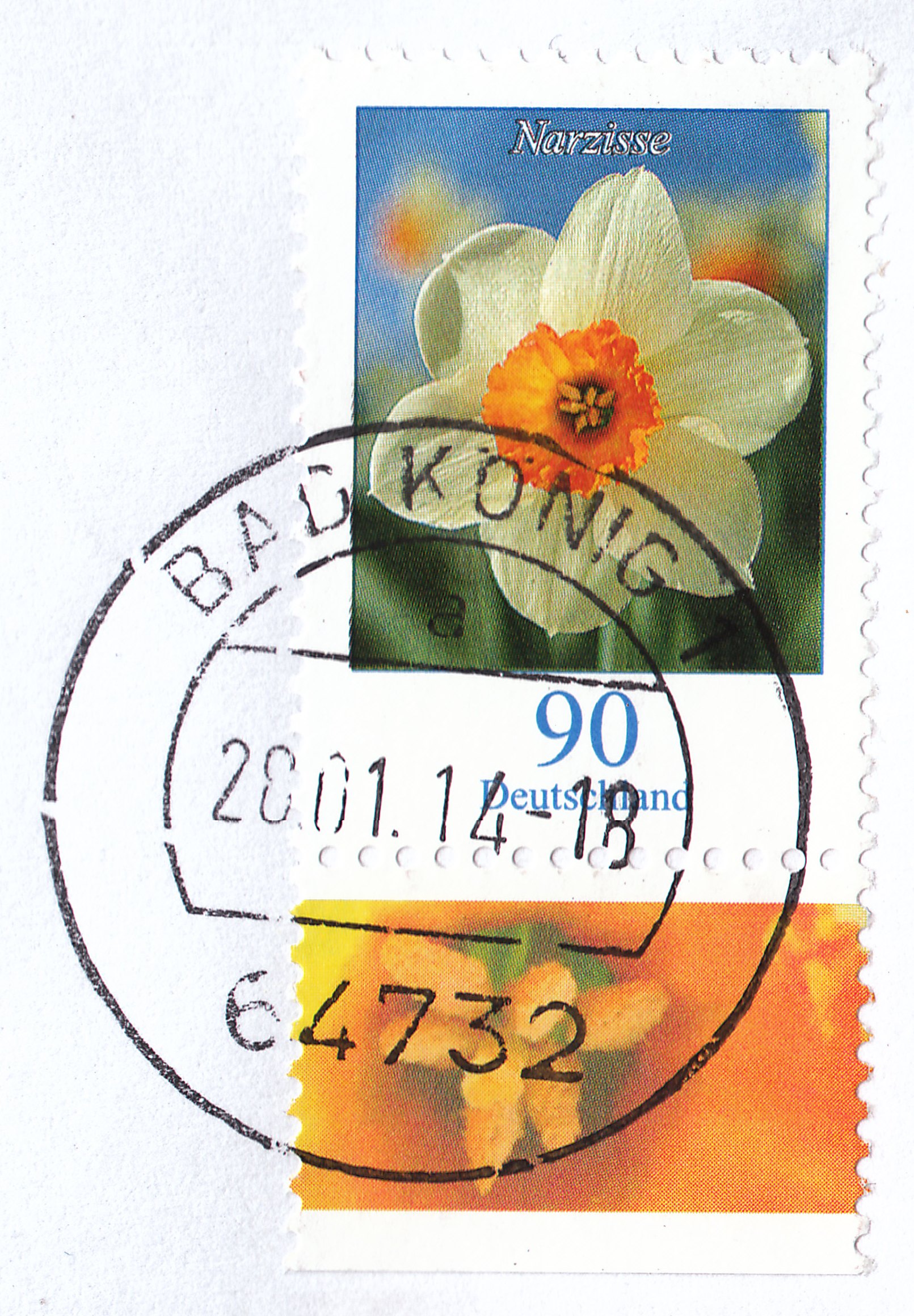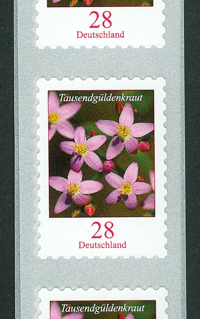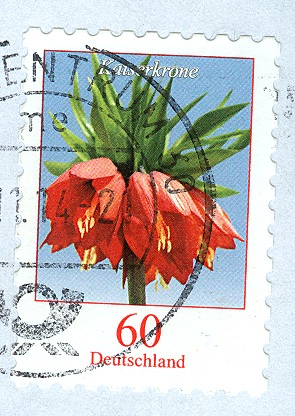 Hier eine Einzelfrankatur der roten Kaiserkrone (selbstklebend).