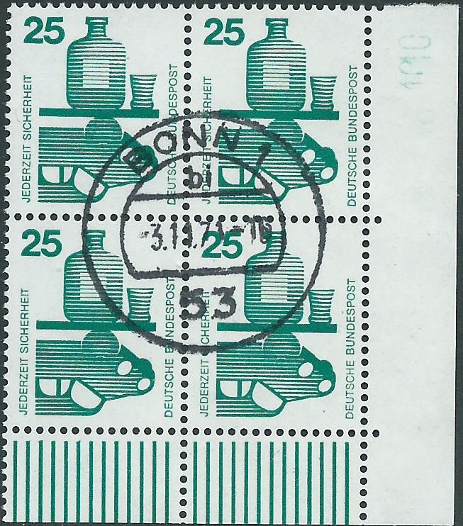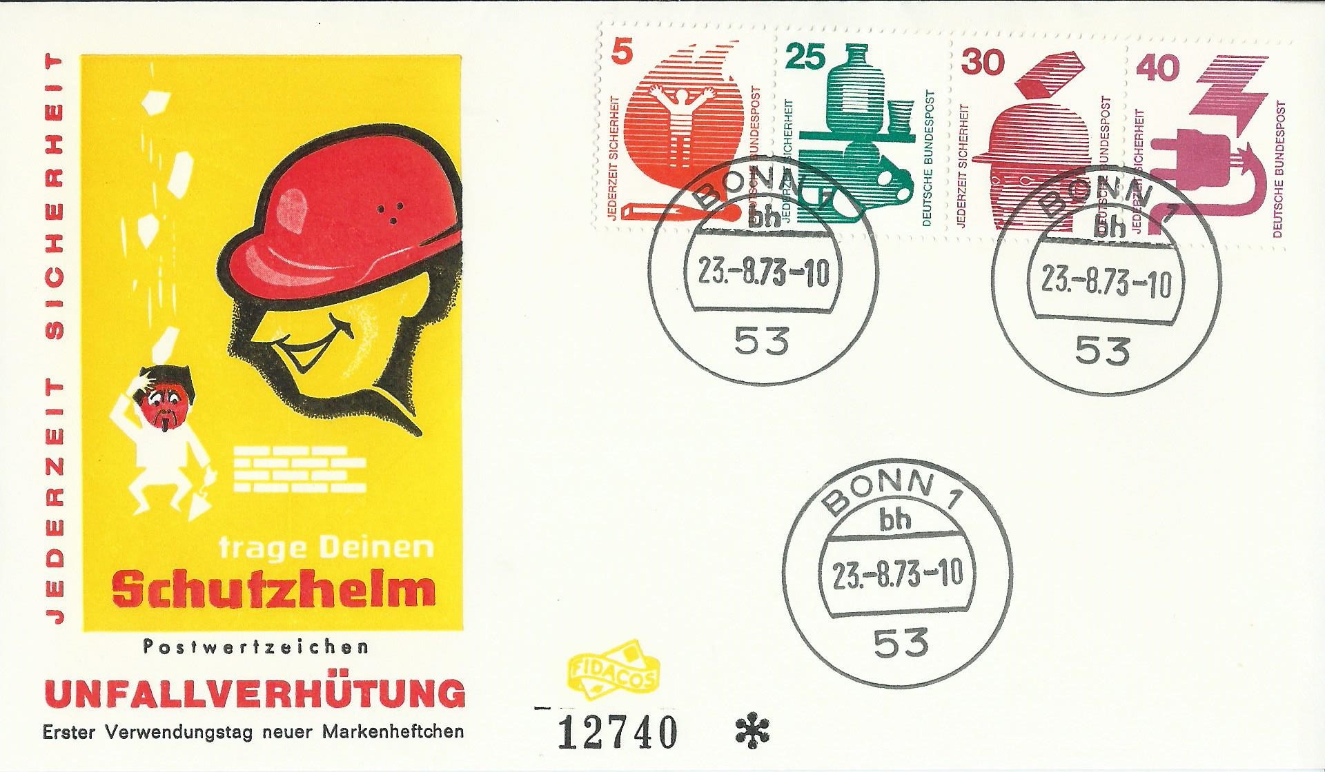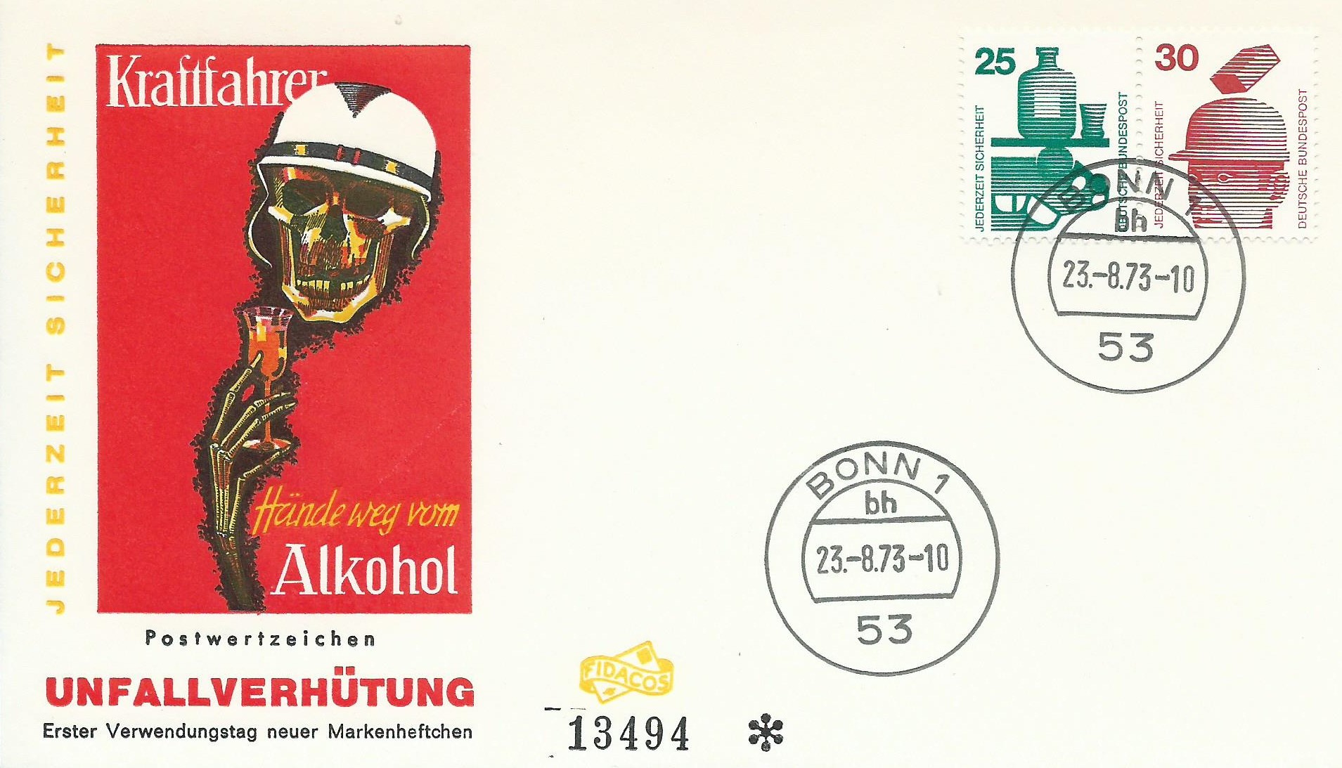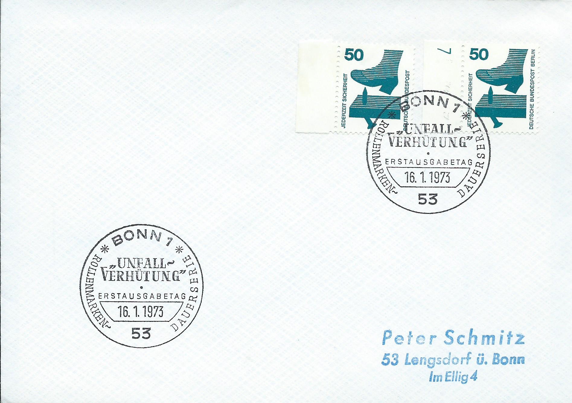 Nun folgen hier einige Ersttagsbelege mit Zusammendrucken vom Markenheftchenbogen und –blatt zeigen. Wobei, …, ich hoffen mal, dass es auch welche sind. Der Michel schreibt als Ausgabezeit nur „August 1973“, ohne einen bestimmten Tag zu nennen. Zumindest sind die folgenden Belege alle am 23.8.73 in Bonn gestempelt worden und haben „offizielles Aussehen“, das lassen wir mal so dahin gestellt.