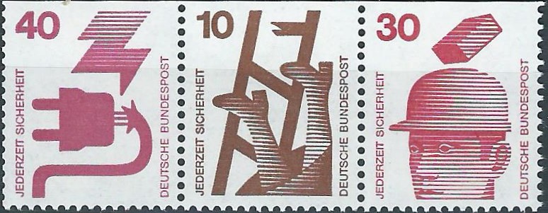Den Anfang macht der Zusammendruck aus dem Heftchenbogen Michel-Nummer „KZ 10“, also Kehrzusammendruck Nummer 10. Es sind 2 Werte zu 5 Pf mit Zwischenste auf dem Zwischensteg ist noch eine grün/orangene Strichelleiste zu sehen.