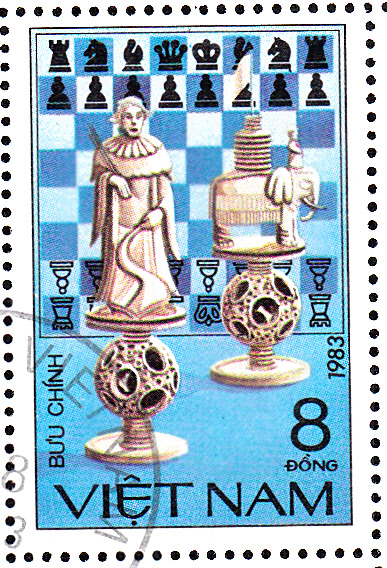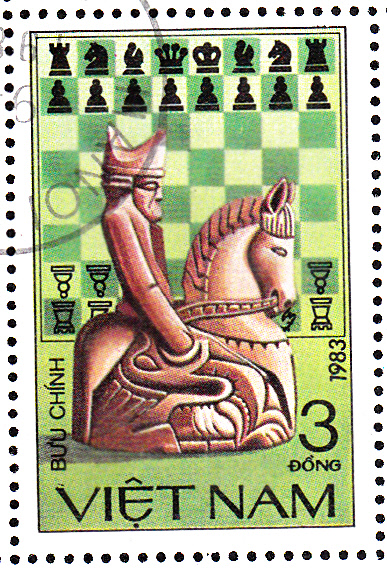 Auf dieser Marke aus Vietnam (MiNr 1339) ist eine Schachfigur aus Europa abgebildet, es handelt sich offensichtlich um einen Springer.