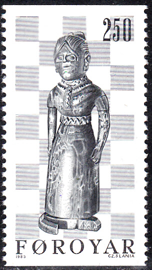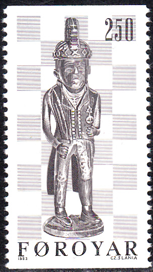 Aus Dänemark Färöer kommt dies Marke (MiNr 82) mit der Abbildung eines "König".