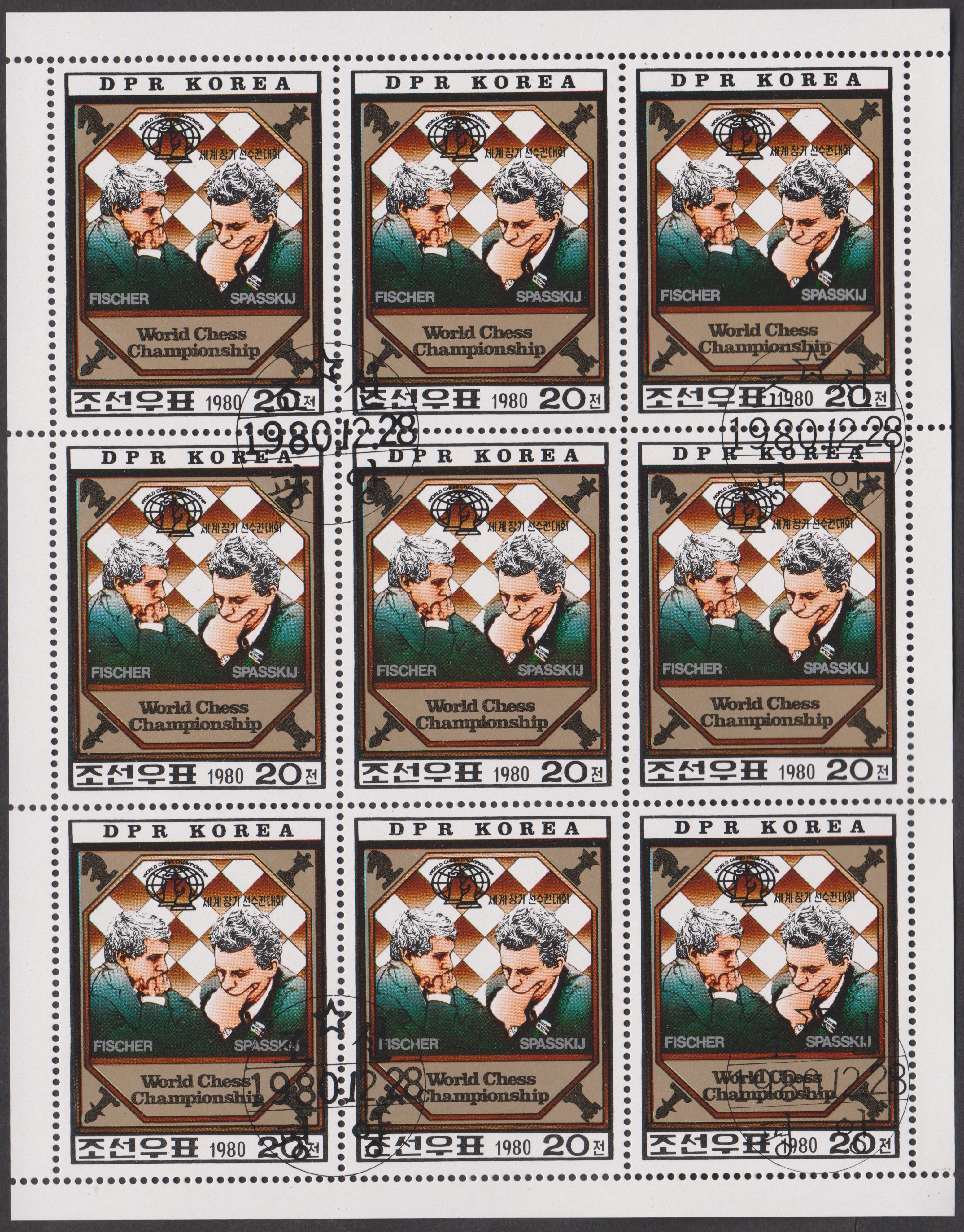 Nordkorea MiNr. 2074/2075 zeigen gleich vier Schachspieler der Weltklasse: